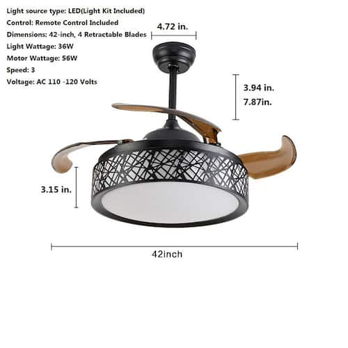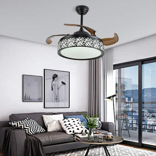 About This Product:Our 42 in. ceiling fan lamp illuminates your space with modern design, making it the perfect choice for chandelier lovers. Usually as an ordinary fan, it promotes air circulation very well. When closed, the blade retracts invisibly, leaving only a beautiful LED(Replaceable) chandelier. It´s equipped with 4 retractable blades and a powerful quiet motor, the ceiling fan light can move a large amount of air. In the hot summer, it will meets all your expectations and needs. All operations can be controlled by the remote control, adjust the lighting switch of the ceiling fan (white light - neutral light - warm light), wind speed (low - medium - high), the fan or the light can be turned on separately.
