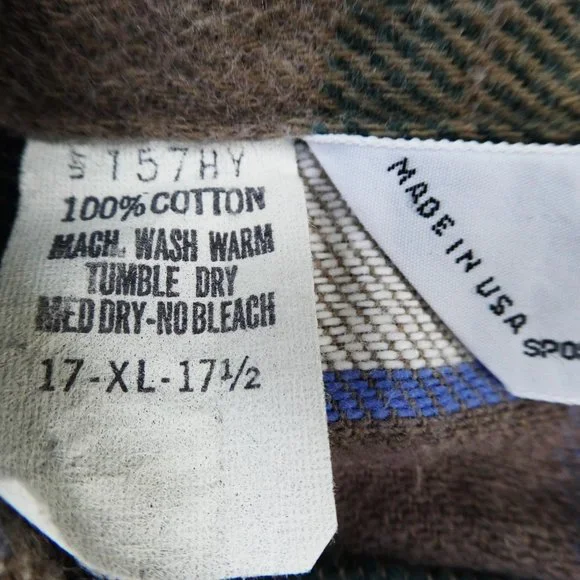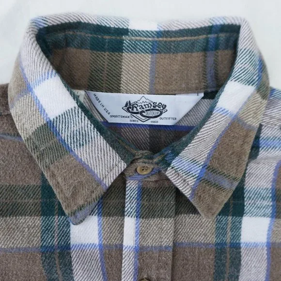 Vintage Rugged Flannel Shirt Ramsey Outdoor Sportsman´s Outfitter since 1060. USA Neutrals Thick Plaid Chest Flap Pockets. Beige Brown Blue Green White. Machine Wash Cotton. Tagged Vintage Sizing 17 XL 17 1/2.Chest: 25"x2 flat acrossShoulder: 20"Sleeve: 24.5"Length: 30.5"Condition: Preowned. Great Condition. NO stains. NO holes/rips/fraying. Minor wash wear.Obx 18.3oz thrl46 P1300557posh geminitiger7et Lumberjack Heavy Rugged Streetwear Warm Bean Eddie Fall Winter Orvis Lands Casual Button Front Western Cowboy Yellowstone dude Ralph Shacketgeminitiger7dez