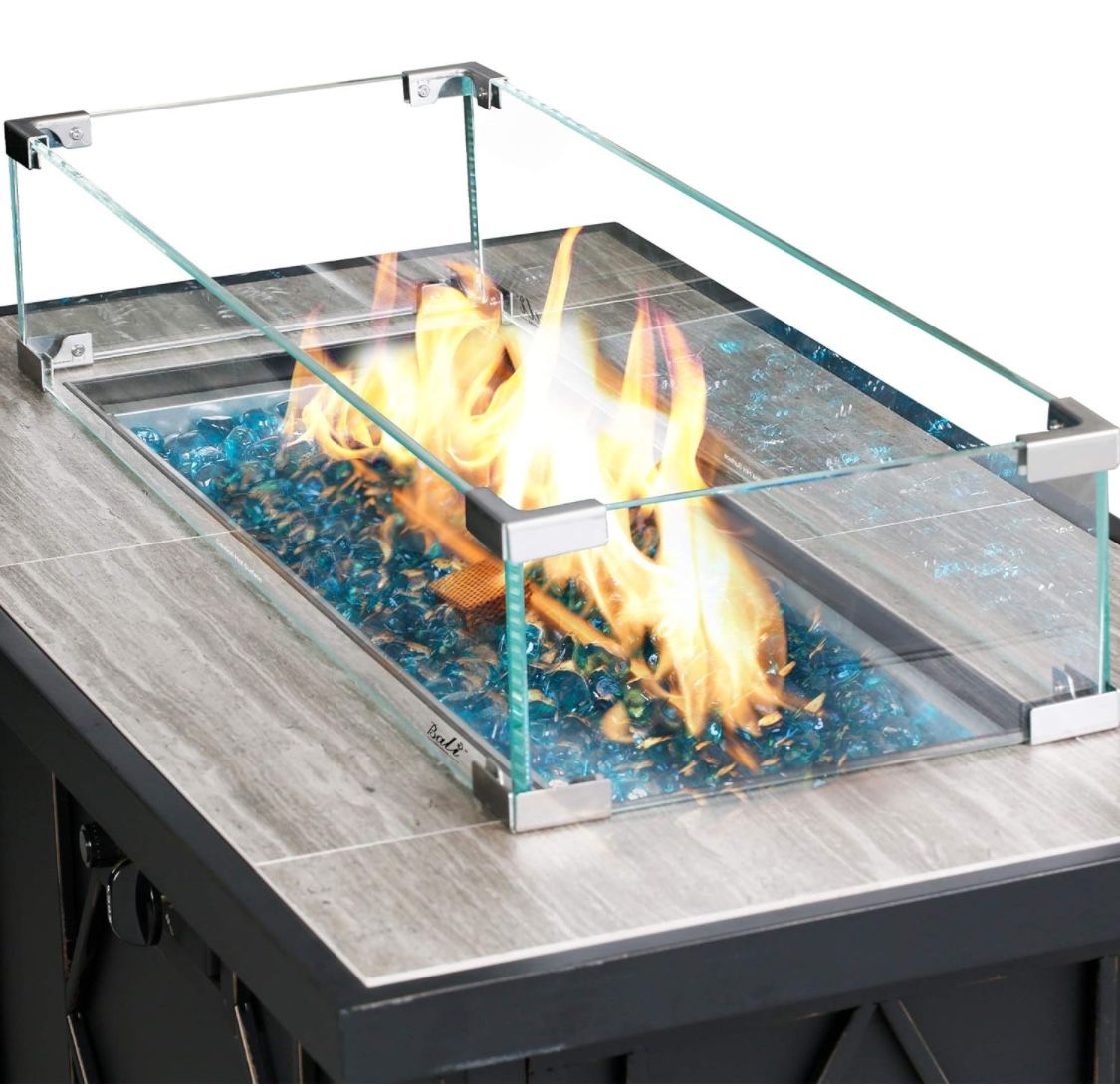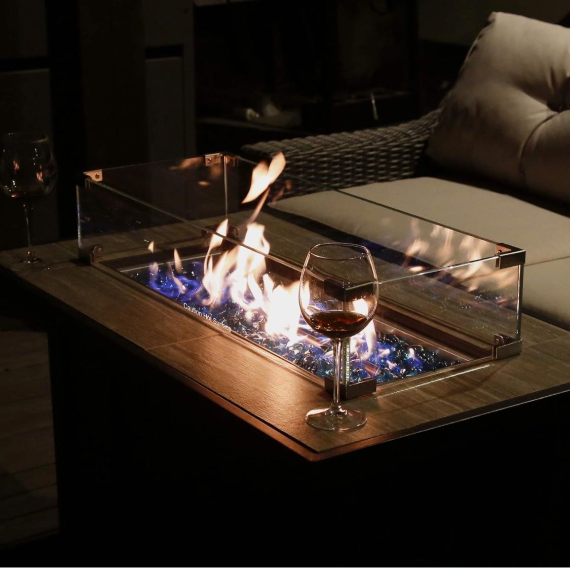 New already assembled Retail price for the table $330Retail price for the Wind Guard Clear Tempered Glass Flame $88Asking $350