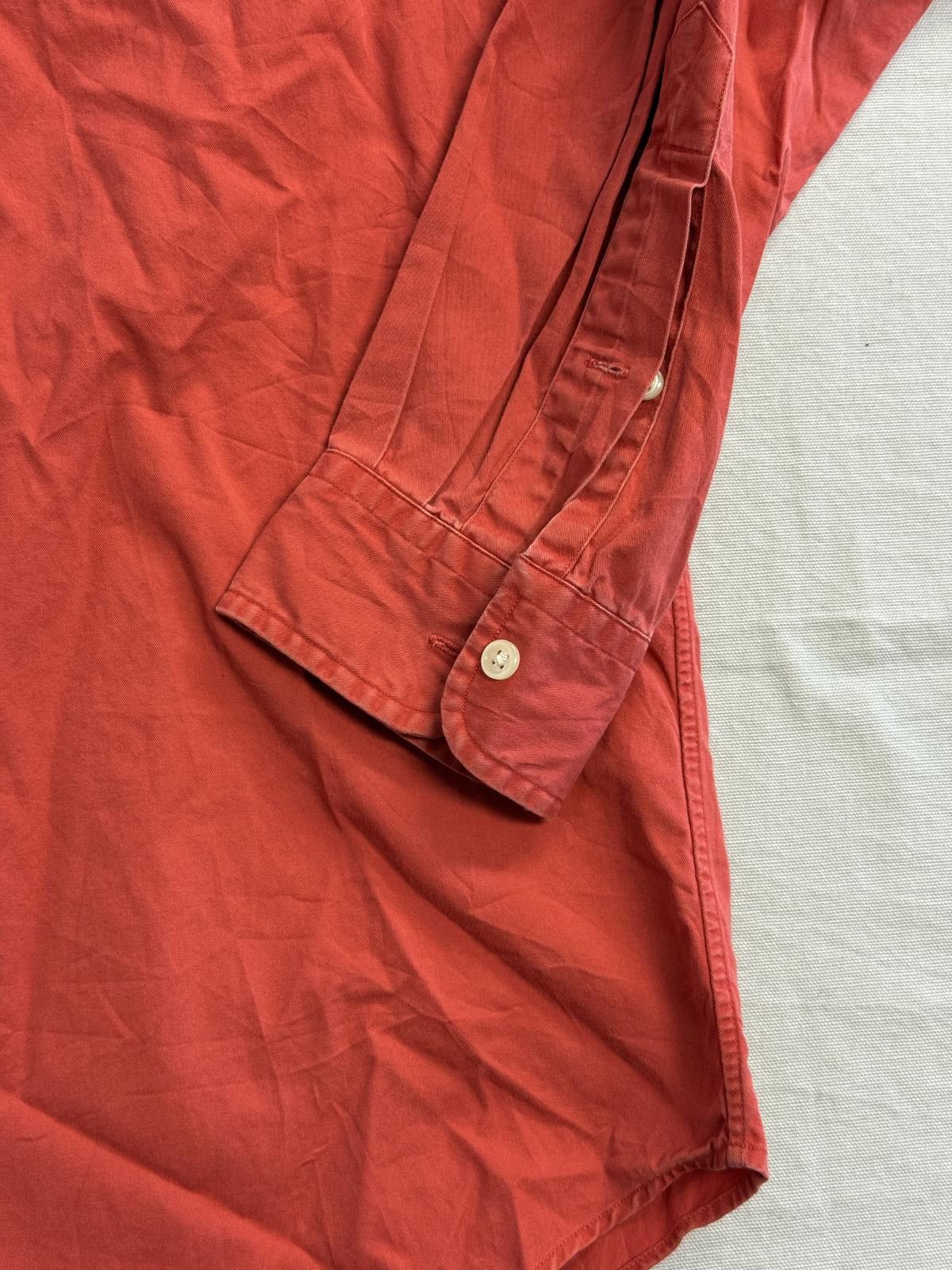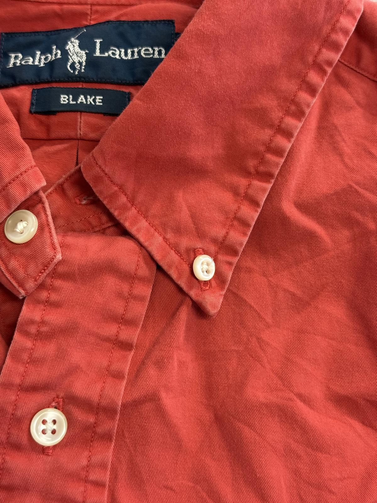 Ralph Lauren Blake Button Down LS Oxford Burnt Red Dimensions: Lenth (edge of collar): 31 inches With (pit to pit): 26 inchesSIZE: Large Brand: Ralph LaurenMaterial: 100% CottonCondition: Good / Used Sizing: LargeSee photos for measurementsPhotos of the Length (side of collar) & Width (pit to pit) are in inches If you have any questions, need more pics... let me know :)
