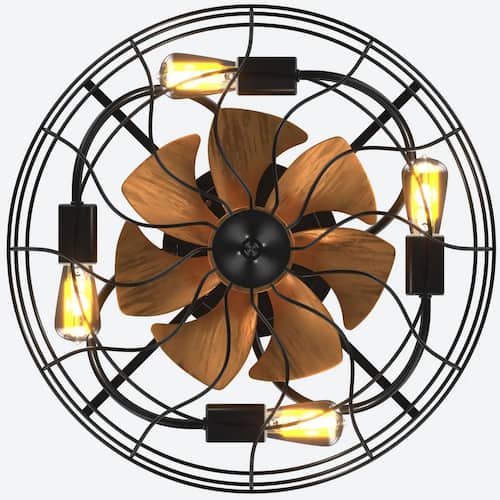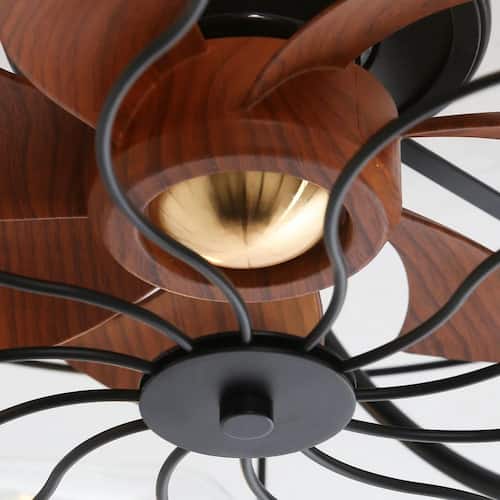 About This Product:This industrial/rustic style caged ceiling fan with 7 ABS blades and stable construction, enclosed looks very beautiful and much safer than traditional fans. And also enhance your home decor with our stylish and functional ceiling fan. Modern decorative ceiling fan with light, each piece is carefully designed and crafted. Great quality fan blades, small with luxury design. It gives the indoor/outdoor decor a touch of class and refinement. The industrial low profile flush mount ceiling fan is designed with 7 ABS fan blades of rustic wood grain and black metal caged frame, perfectly matching and decorating your home. Finished metal cage ceiling fan light, including remote control and installation accessories and manuals. Unique hook design, no need for more than one person to hold up the fan light, a person can also be easily installed.