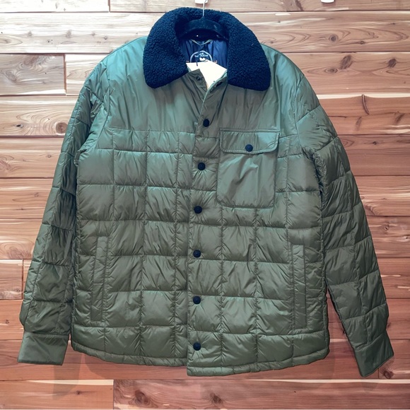 Stylish quilted jacket in green. Features a warm black collar. Ideal for casual wear.100% animal cruelty free!