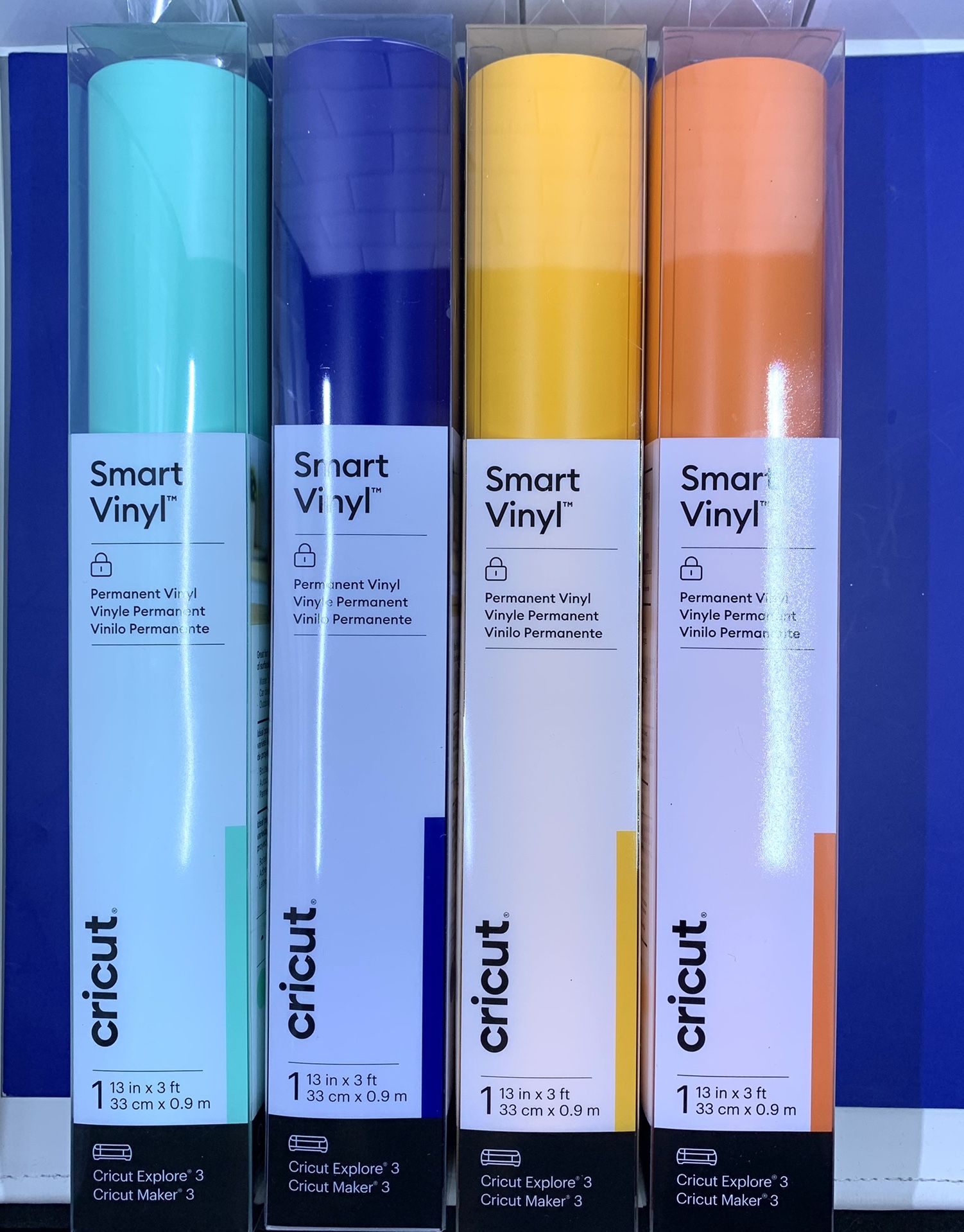 18 rolls total Creating personalized projects, big or small, is a snap with Smart Vinyl. This nifty material lets you make more in less time, no cutting mat needed - just load and go. Cut a quick decal for your water bottle, lettering for a school project or create a bold banner in minutes. This vinyl is weather-resistant, so it’ll last even in the great outdoors.Details:Available in multiple colors13" x 3ft. (33.02cm x 91.44cm)1 rollWorks without a cutting matDishwasher friendlyWeather-resistant - ideal for outdoor projectsFor use with Cricut Explore® 3 and Cricut Maker® 3 machines (sold separately)Note:Not intended for food or mouth contact