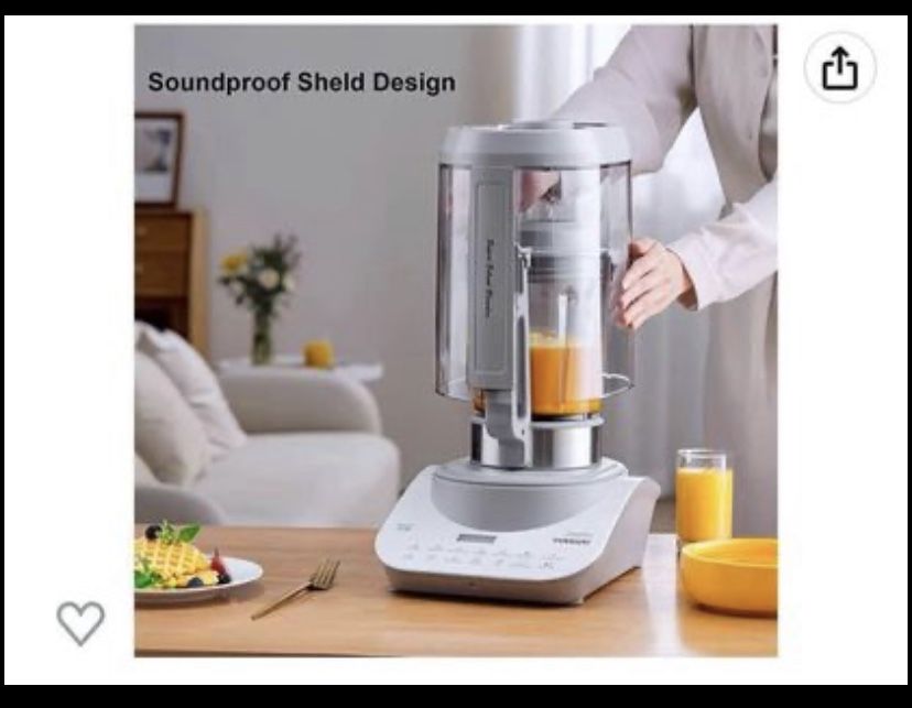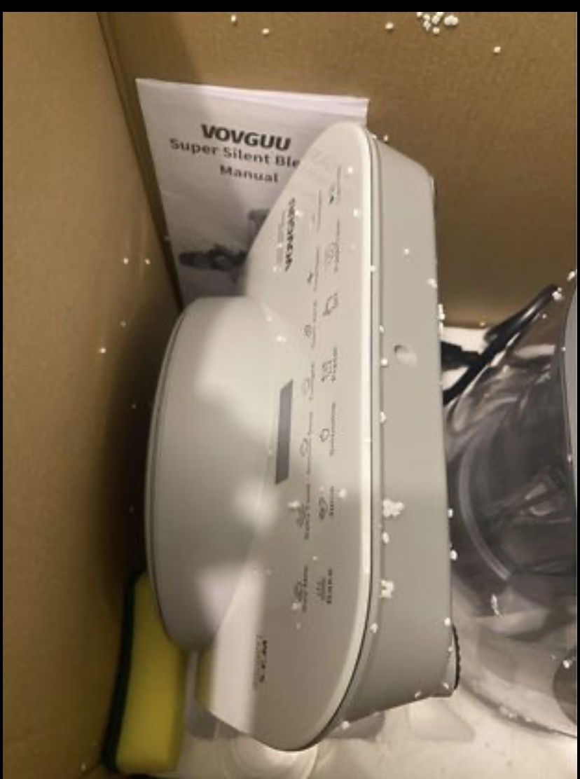 Open box, like new.MSRP: 159.99D-105Quiet and Soundproof Design - Vovguu low noise blender come with a soundproof shield cover to reduce more than 37% of the noise. The soundproof shield with detachable design, you can take off whole shield and easy to take away the blending cup.Glass Blending Cup and heat function - 1.5L(48Oz) big capacity, designed specifically for blending up large quantities of smoothies, shakes or other drinks. Thanks to the glass blending cup, it´s well for heat function, so you can make soup and warm milk easily. 400W blender power + 800W heat power4D blending system - 4D blending system comes with 8 blades, it got the ability to turn ice into snow,Anti-Paste Blending Cup - At the bottom of the blending cup, there is a anti-paste design, you won´t worry about your soup or milk pastes in the cup, it smells terrible and difficult to clean, thanks to the anti-paste design, it won´t happen.10 Function and DIY Ready - Include soy milk, baby food, smooth soup, congee, corn juice, bake, juice, smoothie, preset and clean function, you can make every drink easily, no matter cold or warm drink, also you can clean easily thanks to the self-cleaning function.