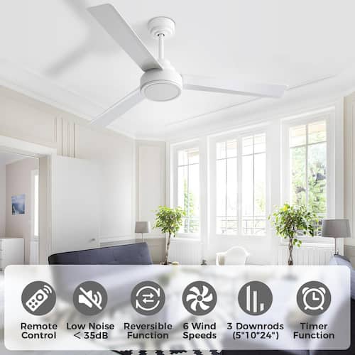 About This Product:The 52 in. 3 ABS blades ceiling fan with remote will add much character to your space. It is a beautiful and substantial fixture and the right combination of modern rustic. The minimalist look and blades will match your different decor styles. This ceiling fan can provide great air movement. with a 35-Watt DC reversible motor this fan has a super quiet performance, no need to endure the noise while saving energy both in the Summers and Winters.