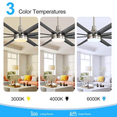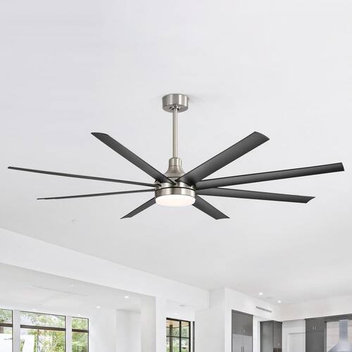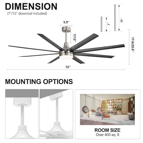 About This Product:A modern industrial design that performs well in both indoor and covered outdoor environments, generates a substantial amount of airflow. It is a very big fan with 8 blades and 72 in. blade span. This dry rated and ceiling fan housing is constructed with the durable ABS and metal material. 8 handsome blades are available in black finish featuring reversible and removable. It features a powerful DC motor that runs smoothly and quietly while operating 70% more efficiently than AC motors. The convenient, 6-speed set-up can be controlled locally using the included remote control.