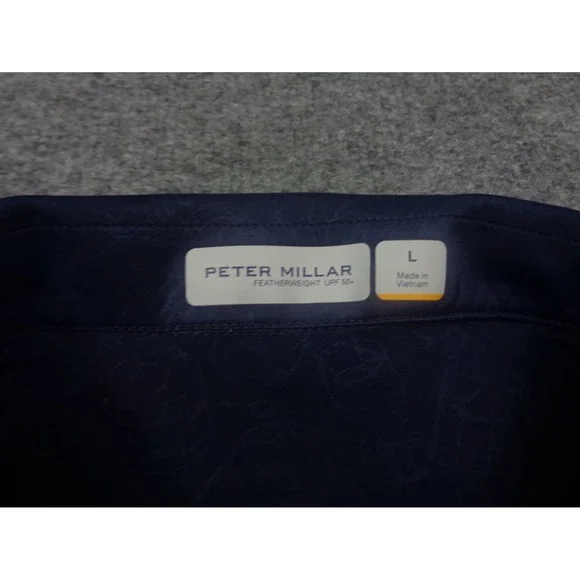 Peter Millar Mens L Blue Polo Featherweight Call Me Old Fashioned Navy UPFShirt is in good condition. Please see photos for condition.Measurements: * Chest:23"(armpit to armpit) * Length:30"(bottom of collar to bottom of shirt)