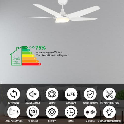 About This Product:This Beaumont 52 in. smart ceiling fan keeps your space cool, bright, and stylish, it is a soft modern masterpiece perfect for your large indoor living spaces. This Wi-Fi smart ceiling fan is a simple design with white finish, using high quality plywood blades and has an integrated 4000K daylight LED. The fan features remote control, Wi-Fi apps and Voice Control Technology (compatible with Alexa and Google Home Assistant, but not included) to set fan preferences.