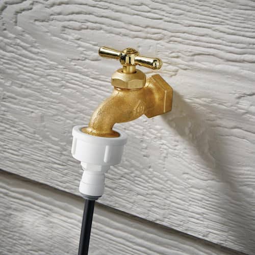 About This Product:The Home Depot exclusive Hampton Bay Misting Fan 52 in. Outdoor Only Natural Iron Ceiling Fan is ideal for keeping you cool in hot weather with its 3 cooling options: use the fan alone, the misting system alone, or both together for maximum cooling. The 5 reversible weather-resistant walnut/black blades will fit into many decor styles and provide long-lasting outdoor use. The Misting Fan is wet rated for direct contact with weather elements and the ceiling fan blades are designed to prevent mist condensation and dripping. The misting fan makes for an easy DIY installation project with it´s QuickFit installation features such as a slide-on mounting bracket and quick install blades that simply pop onto the blade arms with a spring loaded mechanism. The fan requires an outlet for the water pump feeding the misting system, and comes with a hose and spigot attachment to bring water up to the misting apparatus itself as well as an extension cord for the pump. The fan has 3 speeds to provide a gentle breeze or stronger airflow.