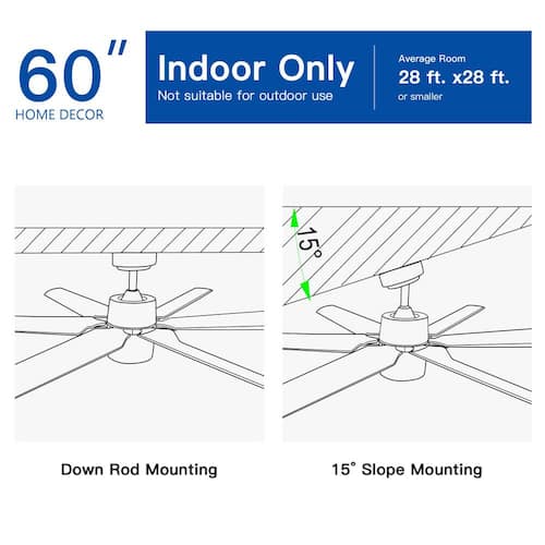 About This Product:The Modern 60 in. Integrated LED Light Ceiling Fan combines style, convenience, and efficiency. With its sleek matt black finish, it adds a modern touch to any space while keeping the air fresh and comfortable. The 6-speed remote control lets you easily adjust the airflow and lighting to suit your needs, ensuring comfort in every season. The quiet reversible motor allows for warm air circulation in winter and cool airflow in summer, making it a great choice all year round. Made from high-quality ABS material, this fan is both lightweight and durable, built to last for years. The energy-efficient LED light provides bright illumination while helping to lower electricity costs. Whether placed in a living room, bedroom, or dining area, its minimalist design blends effortlessly with different interior styles. Plus, it´s compatible with sloped ceilings up to 15°, making installation easy and flexible. Enjoy comfort, style, and convenience with this modern fan.