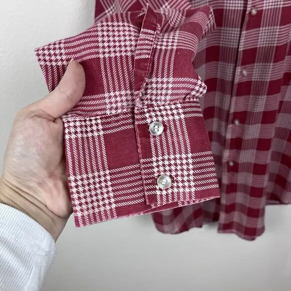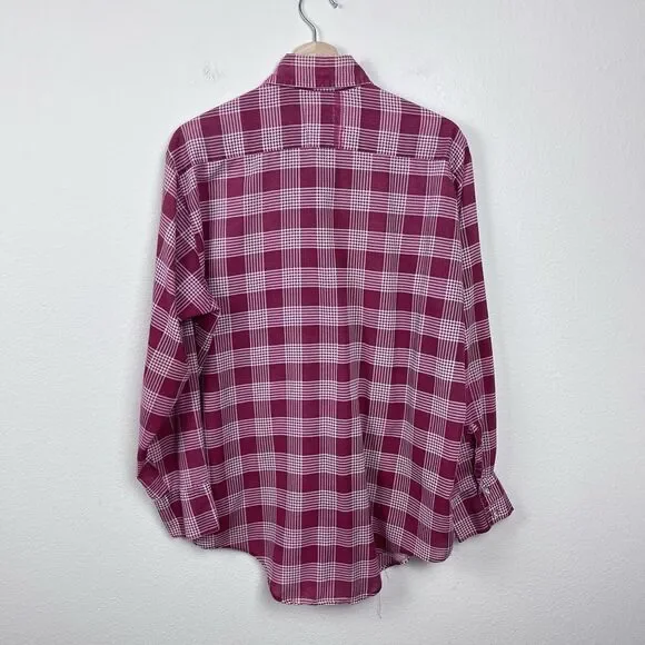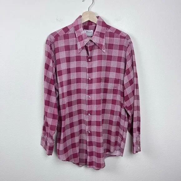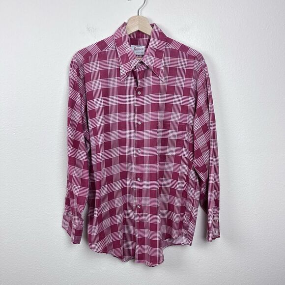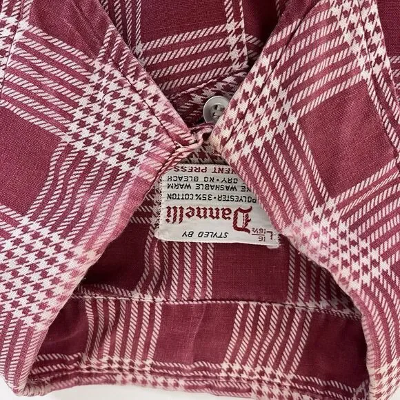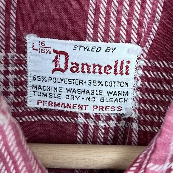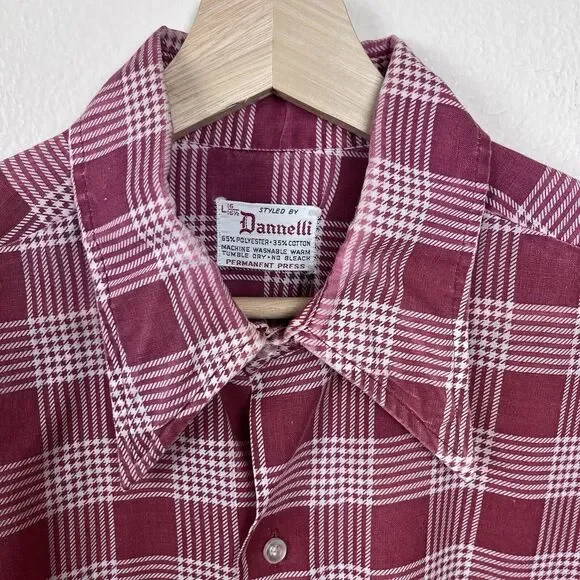 Vintage Dannelli Mens ShirtPolyester and cotton blendGlen Plaid printtosPoint collarButton frontLong sleevesFront pocketLightweightRetro. 60s. 70s. Workwear. Everyday.Good used condition with some fading due to wash wear as seen in the photos.Measurements in photos. Size L