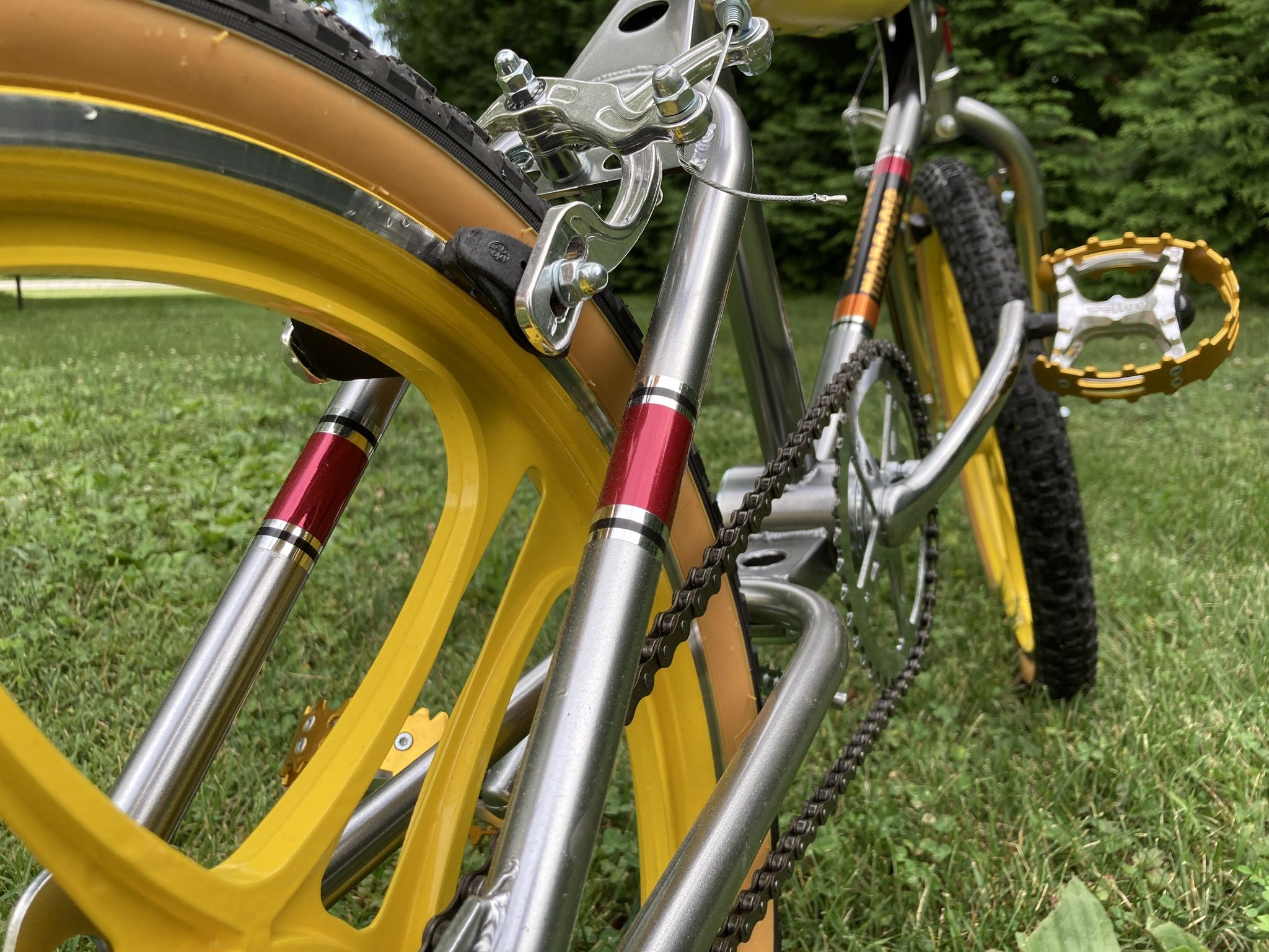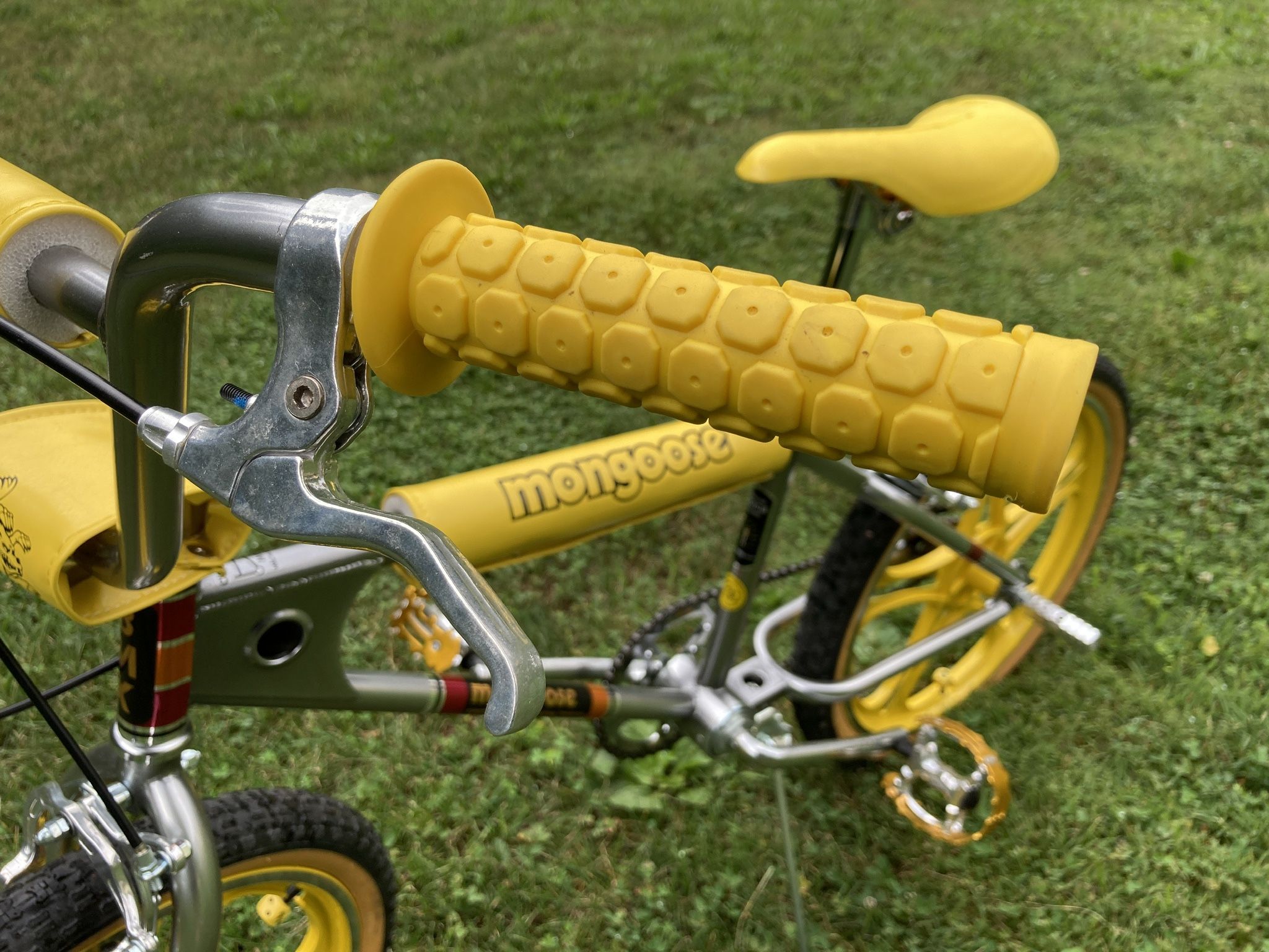 This is a modern replica of a Mongoose BMX bike from the 1980s. These were available at Walmart and Target stores for a limited time in limited quantities and are no longer available. This bike has a complete set of reproduction Mongoose decals as well as some fancy pedals. All the original parts are also included (pedals, chain guard, headlight)A must have for any vintage BMX enthusiasts and fans of the show Stranger Things!! Asking $300Delivery can be arranged