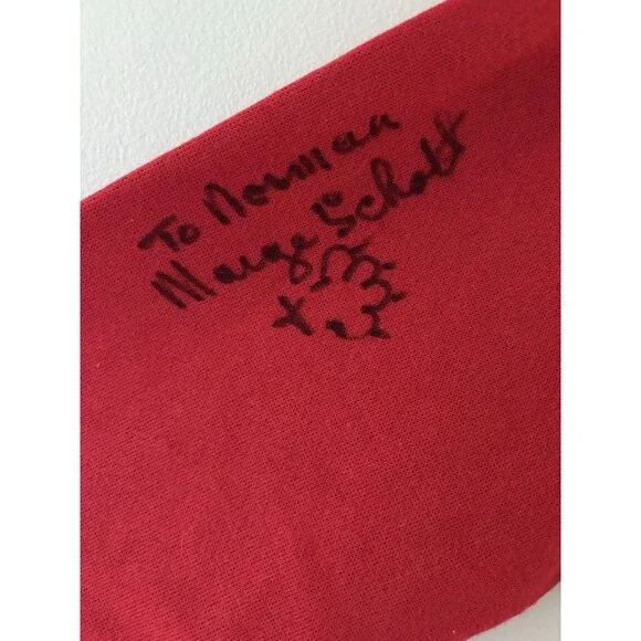 Measurements (inches) - laying flatTag Size: XLLength (top of collar to hem): 26"Chest (pit to pit): 22"Sleeves: 23"Waist: 22"Additional Information: There are two spots (one of the front by the logo and one of the sleeve) - see photosAutographed by Marge SchottPlease check your measurements with the ones in the listing. Do NOT rely on Tag Size.