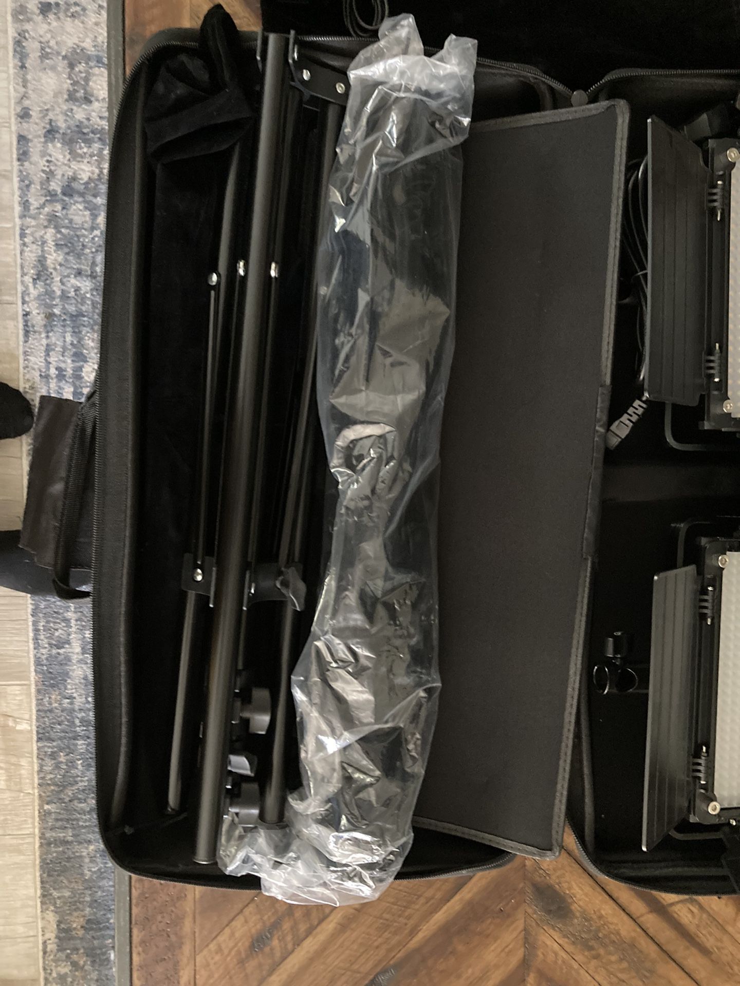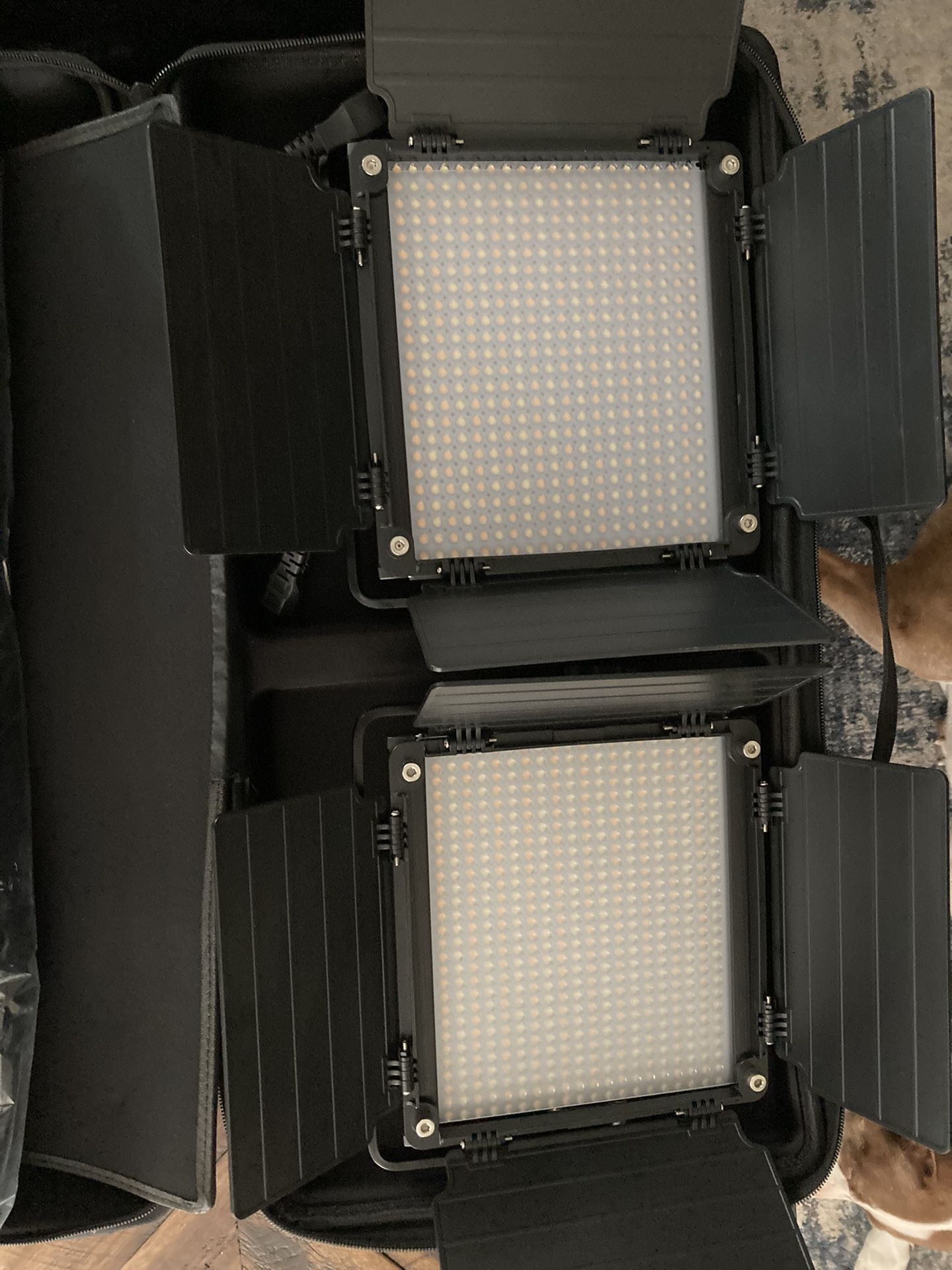 Opened but never used and in perfect condition 2 lights with electrical -The two lights are GVM model LED-480LS, bi color 2 stands Soft and sturdy case Pick up in west hills