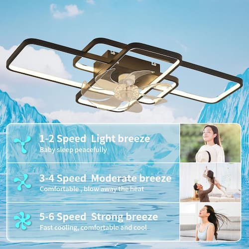 About This Product:This ceiling fan light has comprehensive remote control and APP control functions, which can easily achieve reverse operation, wind speed adjustment and timing operation, providing users with a convenient user experience. Its dimmable feature allows users to switch different light source color temperatures according to their needs to adapt to different atmosphere needs. Equipped with a silent DC reversible motor, the ceiling fan can adjust the air circulation mode according to seasonal changes to ensure comfort throughout the year.