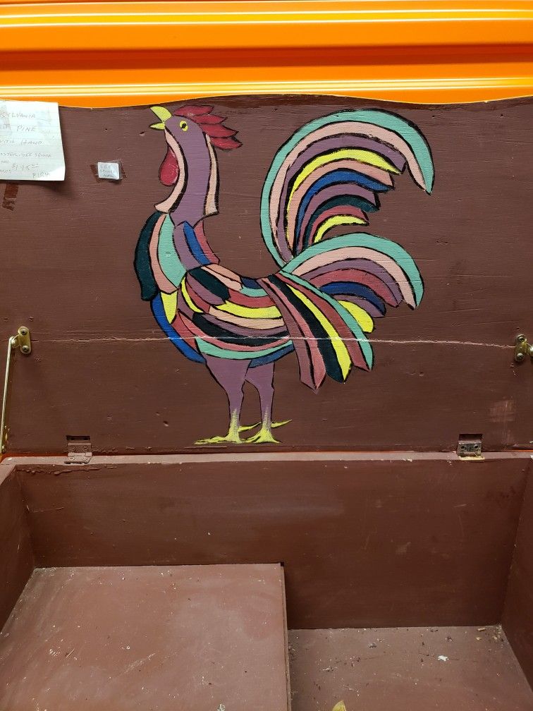 Early Pennsylvania Pine Square NailsAntique Dry SinkHandpainted Rooster under lidSlight damage, shown in pics