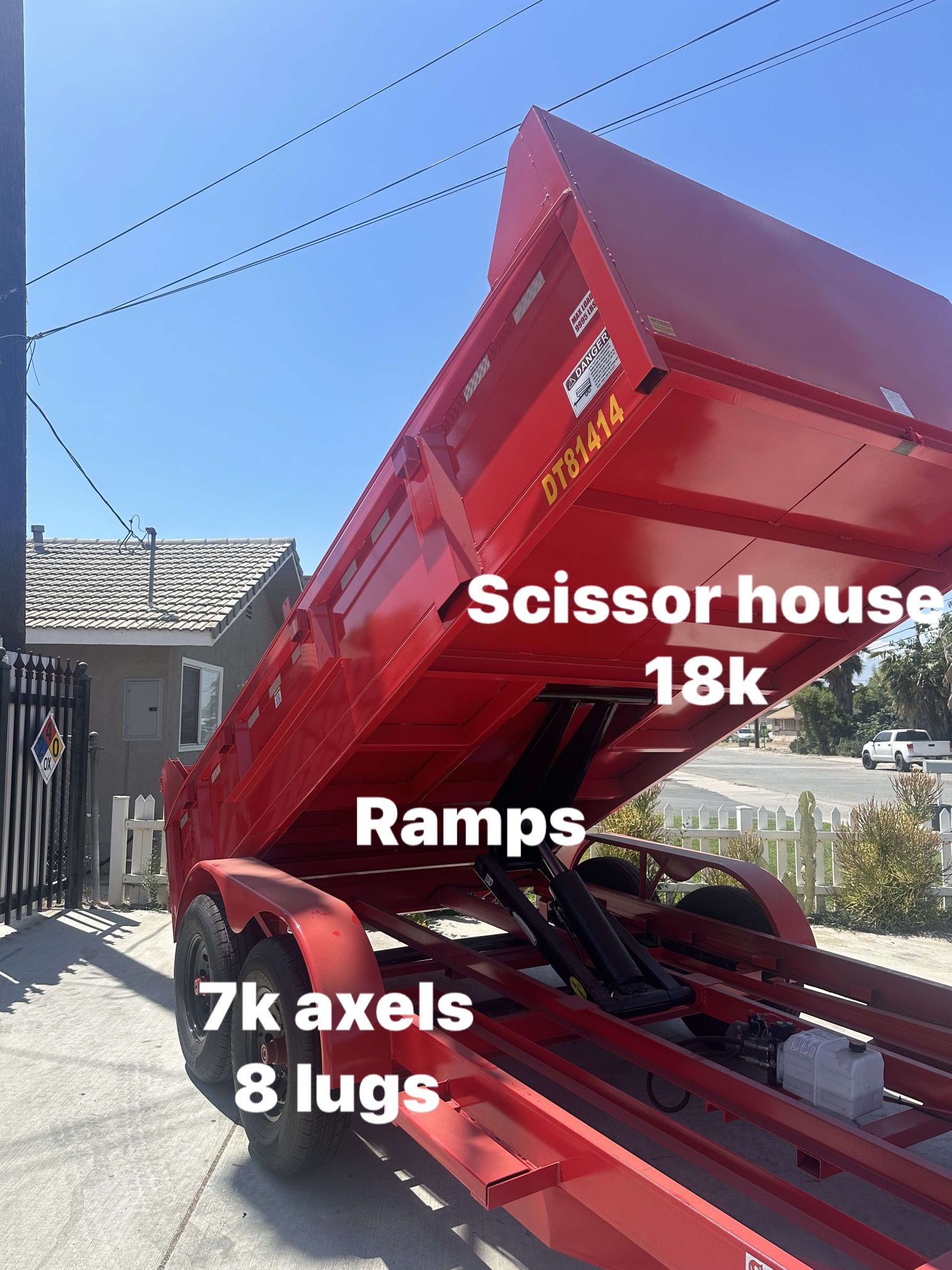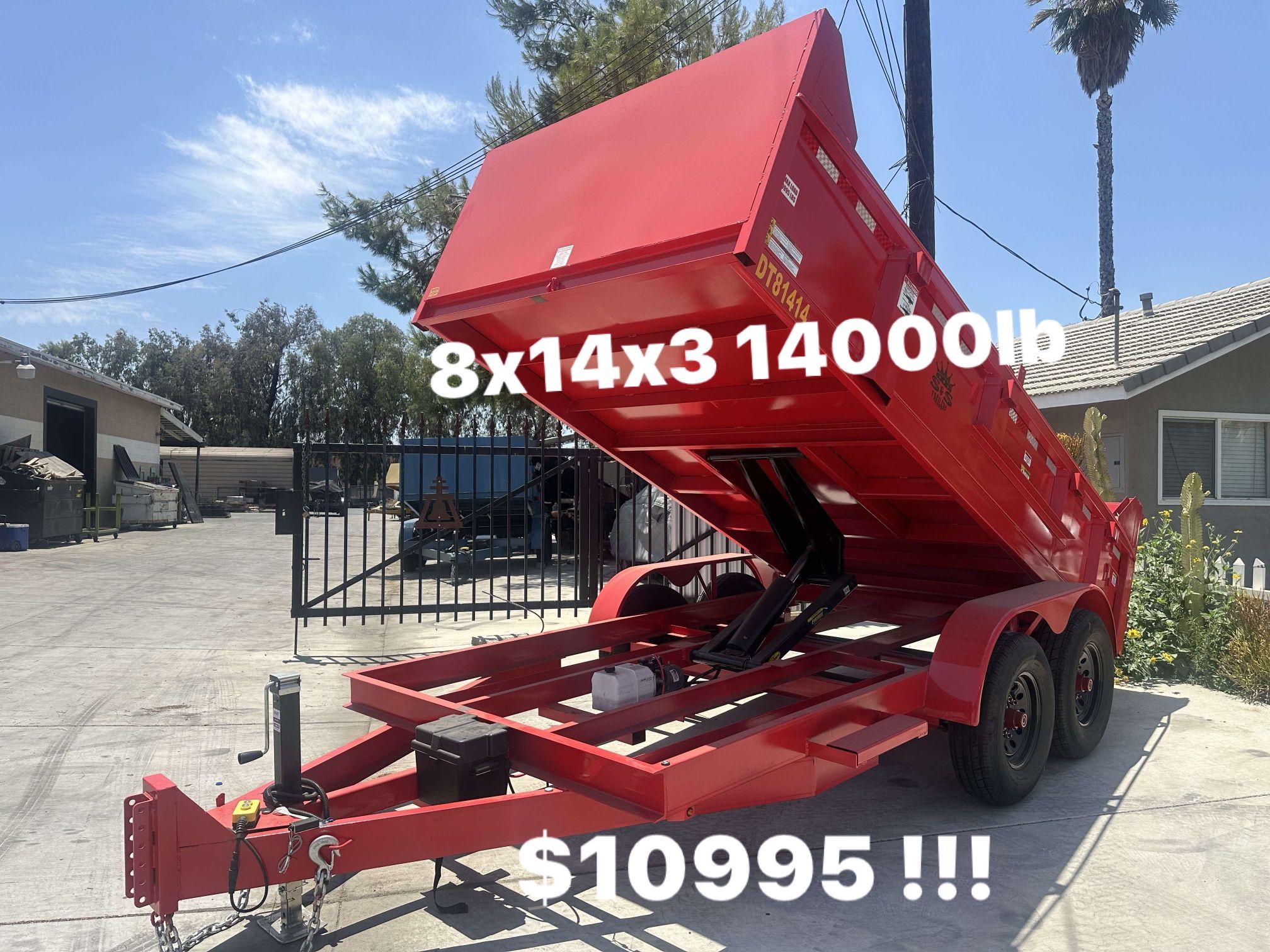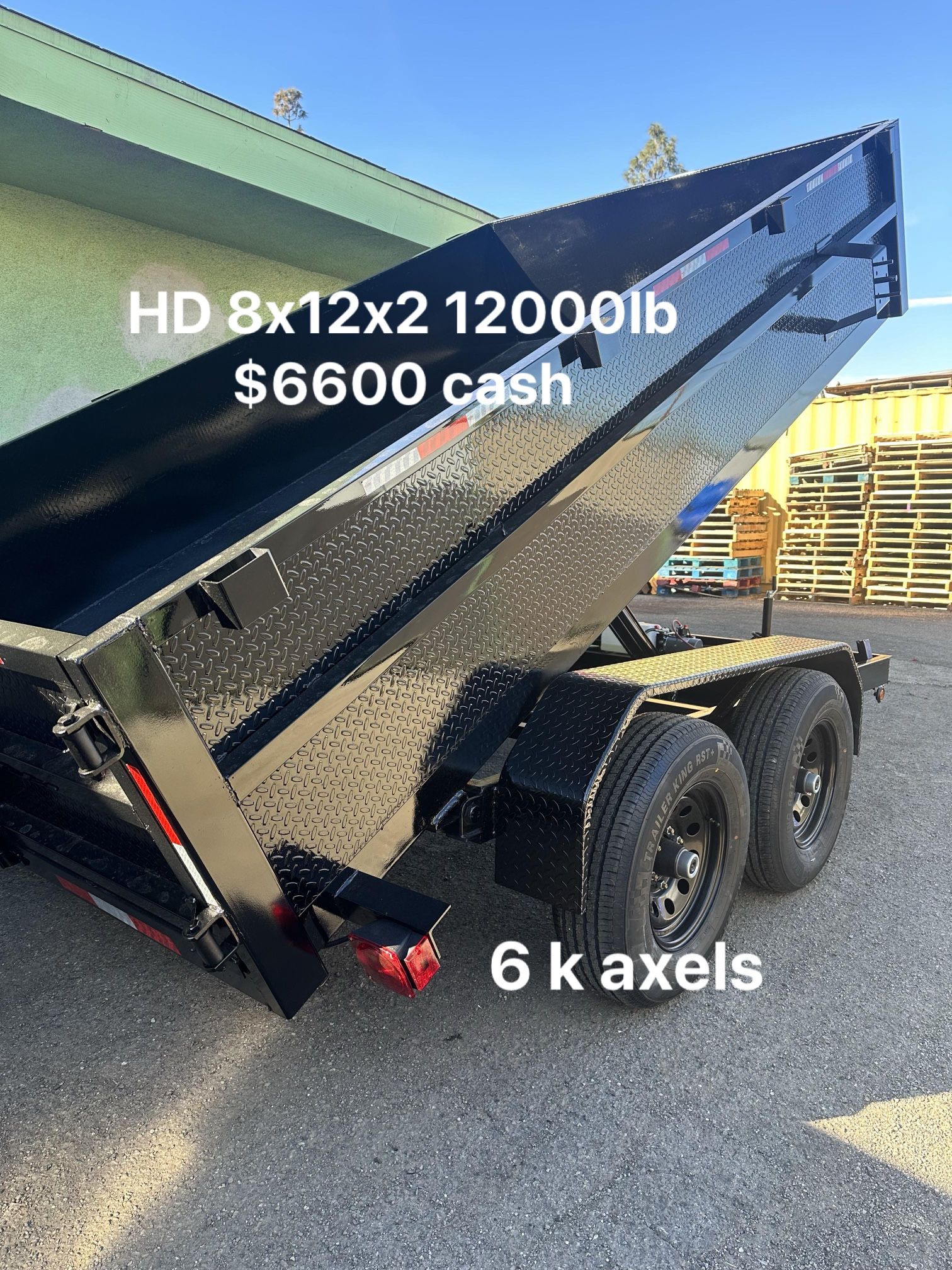 New 2024Dump 8x12x2 12000lb2 axels 6k 6 lugs Electric brakes Single cylinder hydraulic 12000lbFenders !!diamond metal !!Led lights Battery marine and remote control Buy direct factory $6500 cash only