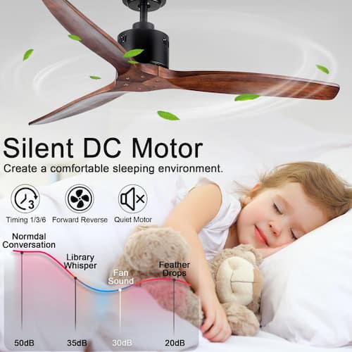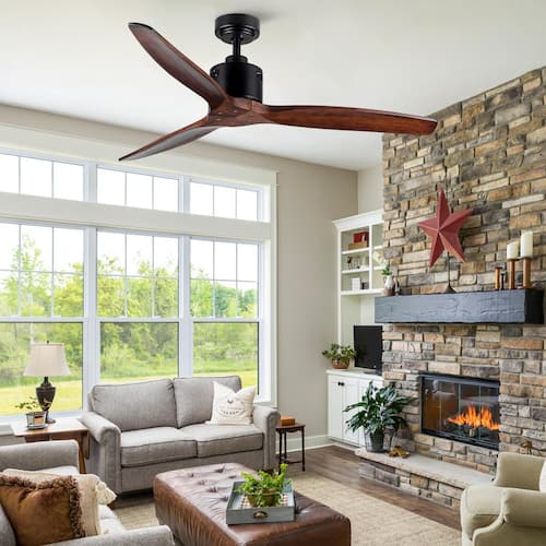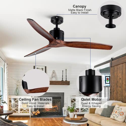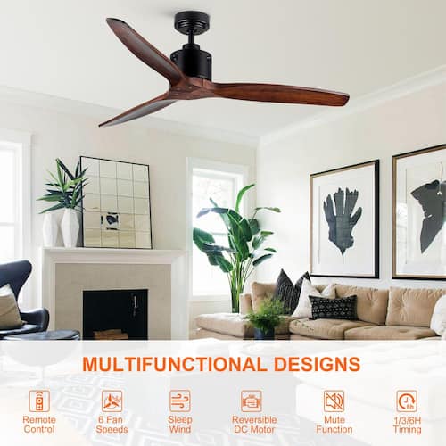 About This Product:This 52 in. ceiling fan without light has a vintage feel to its design. Its solid wood blades are designed to be perfect for farmhouse and rustic styles. Addition,The solid wood material also ensures the reliability and long-term use of the ceiling fan. Decoration in your living room, sunroom, outdoor patio and other dry environment is the best choice. Last but not least,This ceiling fan not only makes the room more beautiful, but it is also easy to use. It has a feature-rich remote control with 6 speed settings, timer settings and more. It has a DC reversible motor that not only saves energy but is suitable for all seasons.