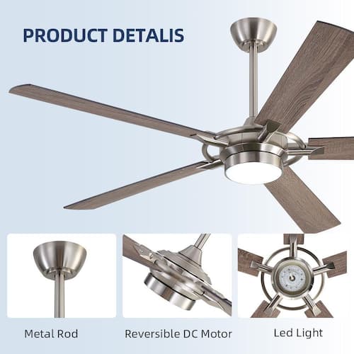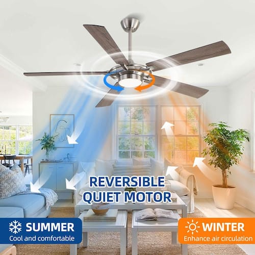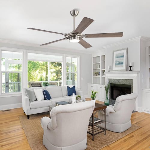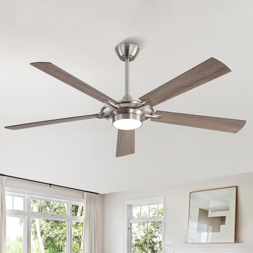 About This Product:The indoor ceiling fan delivers ample airflow into interior living areas with its 5-bladed design that reach a 60 in. blade sweep. This fan features a 2-way rotation to satisfy your different needs all year. The fan´s 6 speeds can be controlled by the included remote.