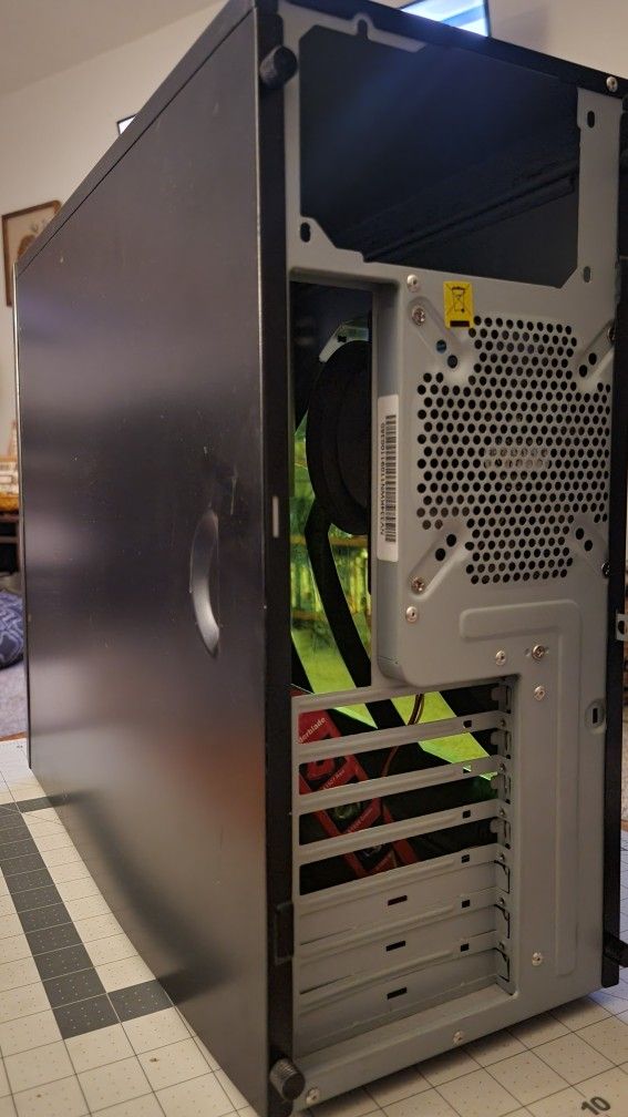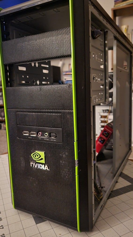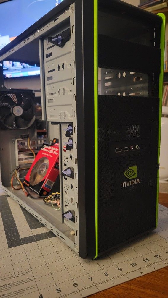 Cooler Master Elite 334 Nvidia Edition ATX pc tower, thermaltake thunderblade 120mm led fan included. Used fair condition