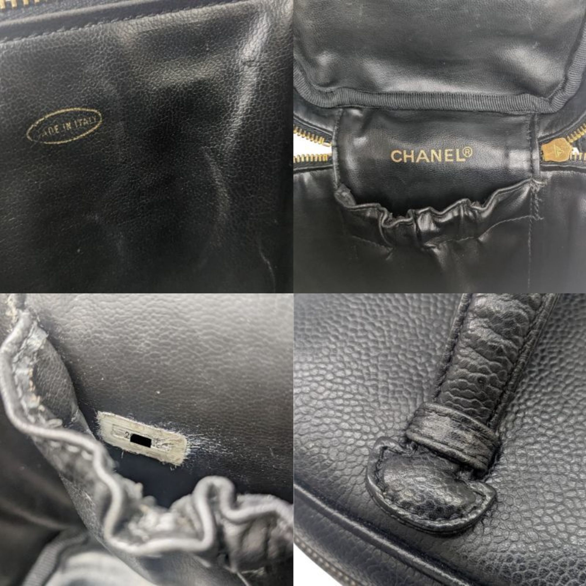 Vanity Caviar Skin Black Bag Pouch Handbag Women Men / Brand : Type : Handbag, Pouch Material Fashion : Grained Calfskin Color Cases : Black Gender : Men,Women Size Hxwxd Cm : 17cm x 15cm x 13cm / 6.69´´ x 5.9´´ x 5.11´´ Width Cm : 15 Depth Cm : 13 Accessories : None Accessories Notice : Before purchasing, please refer to the images of the accessories included with the item. Condition : Used (good) Condition : Rank AB Used - Traces of usage, scratches / dirt can be seen but generally in good condition Condition : Rank AB Damage Ranking : Handle Crease Slight / Inside Misshapen Condition Notice : Before purchasing, please refer to the images for the exact condition of the item. sku : GZl1a9p7 / Please kindly understand that import duties and charges are not included in the item price and these additional charges are the buyer´s responsibility. It seems that packages are being inspected randomly and the custom charges are accordingly. Please check with your country´s customs office to determine what the additional costs might be prior to buying.