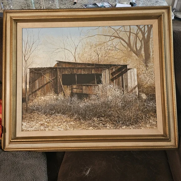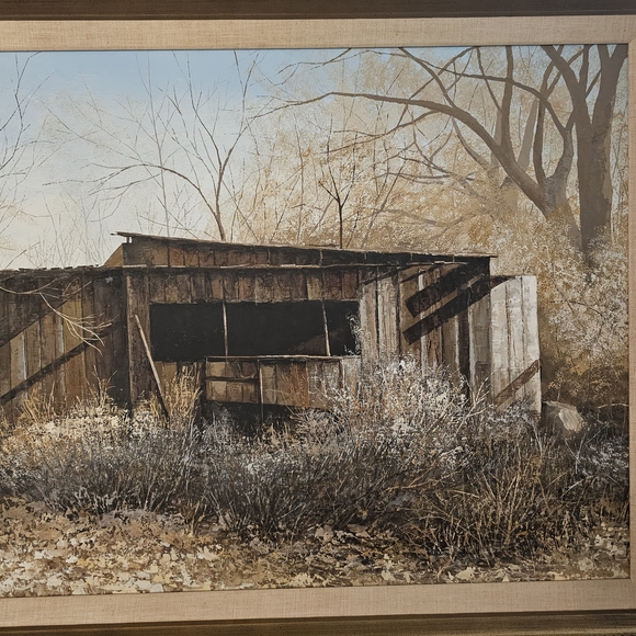 Bring a touch of rustic charm to your home with this beautiful barn landscape art print. Featuring earthy brown tones and a serene natural setting, this piece adds warmth and character to any space.