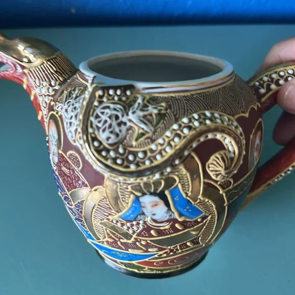 Exquisite ceramic teapot featuring a vibrant dragon motif. The intricate design showcases rich red and gold colors, adding a touch of elegance to your home decor.