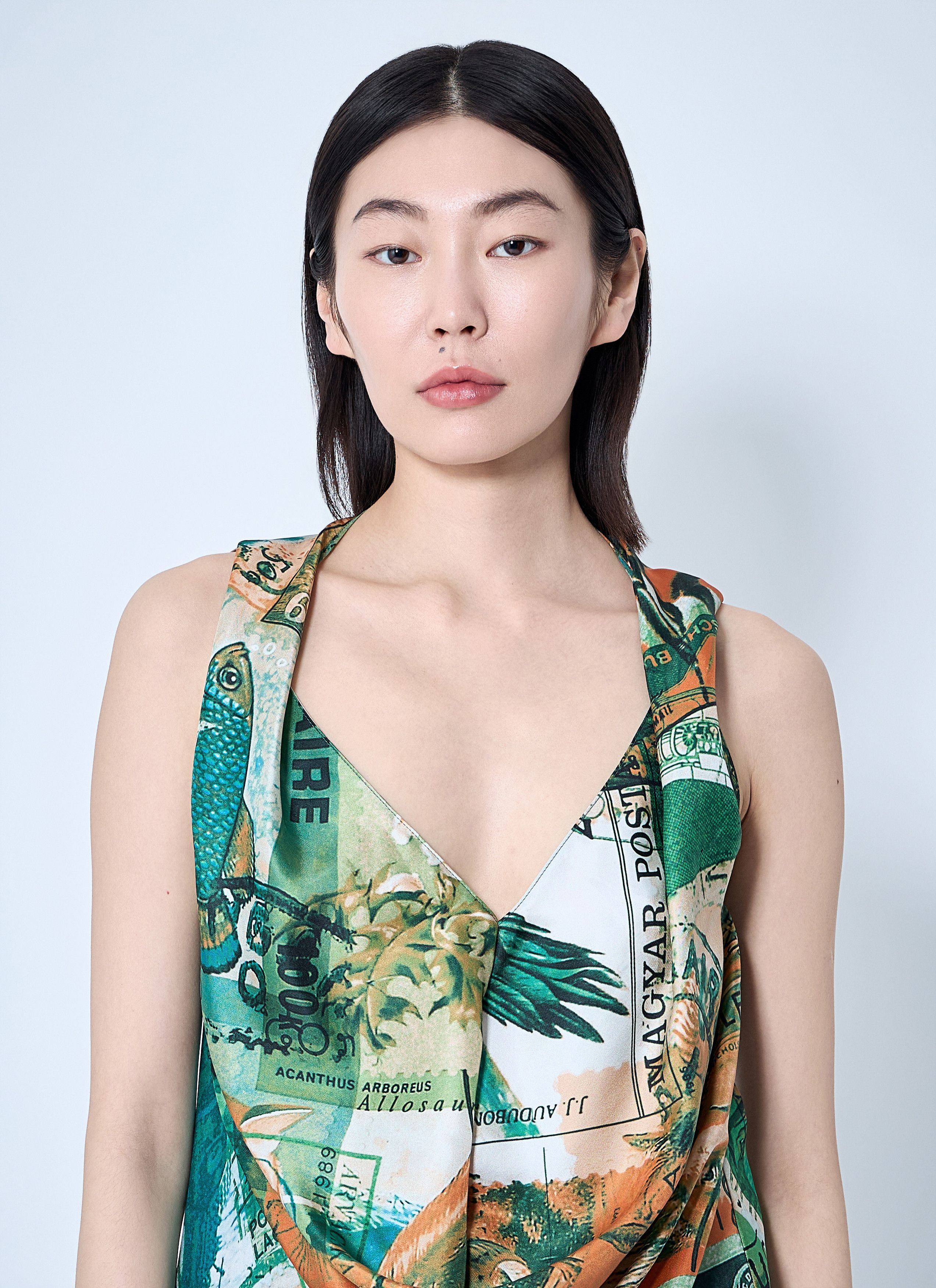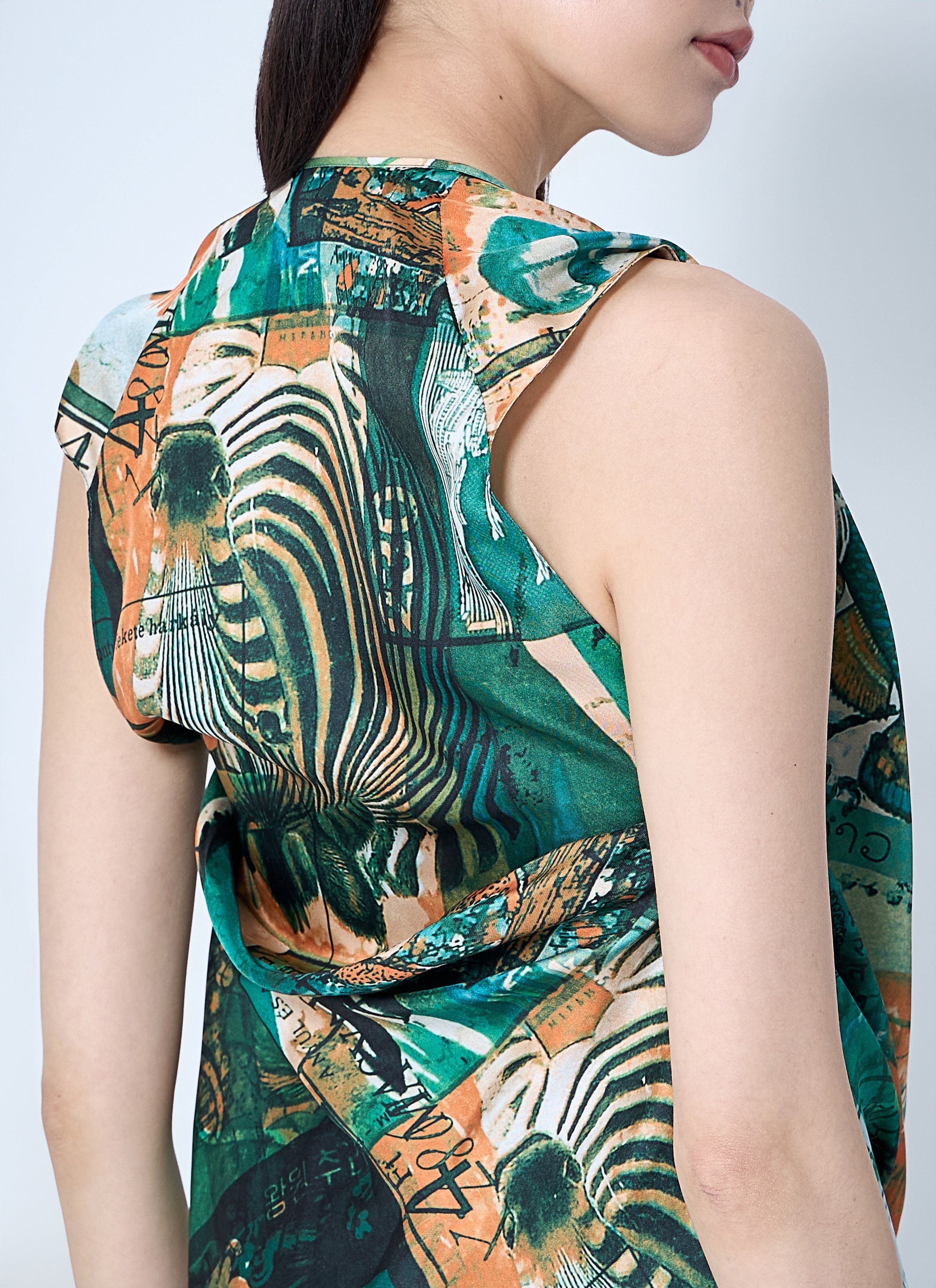 Silk blouse with all-over print.V neckDraped panel construction100% Silk. Hand washKKWSS25TP02-41