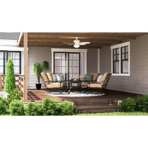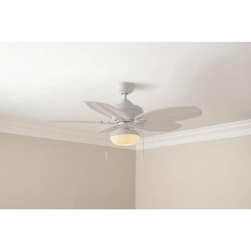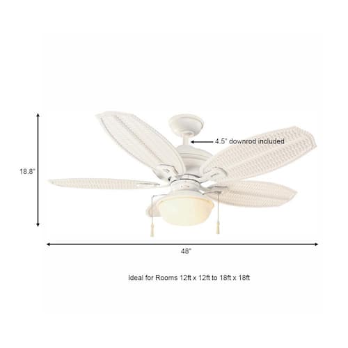 About This Product:The Hampton Bay 48 in. Palm Beach III Indoor/Outdoor Ceiling Fan features heavy-duty construction and a quiet, powerful motor that delivers up to 4,622 CFM of airflow to refresh indoor and outdoor spaces alike. This fan is beautifully crafted with five durable plastic blades in a woven wicker design to create an island feel both indoors and outdoors. An opal glass bowl light kit and two 9.5-Watt LED bulbs are included. The Palm Beach III includes Accu-Arm blade arms for precise, wobble-free installation and QuickInstall blades to make installation quick and easy.