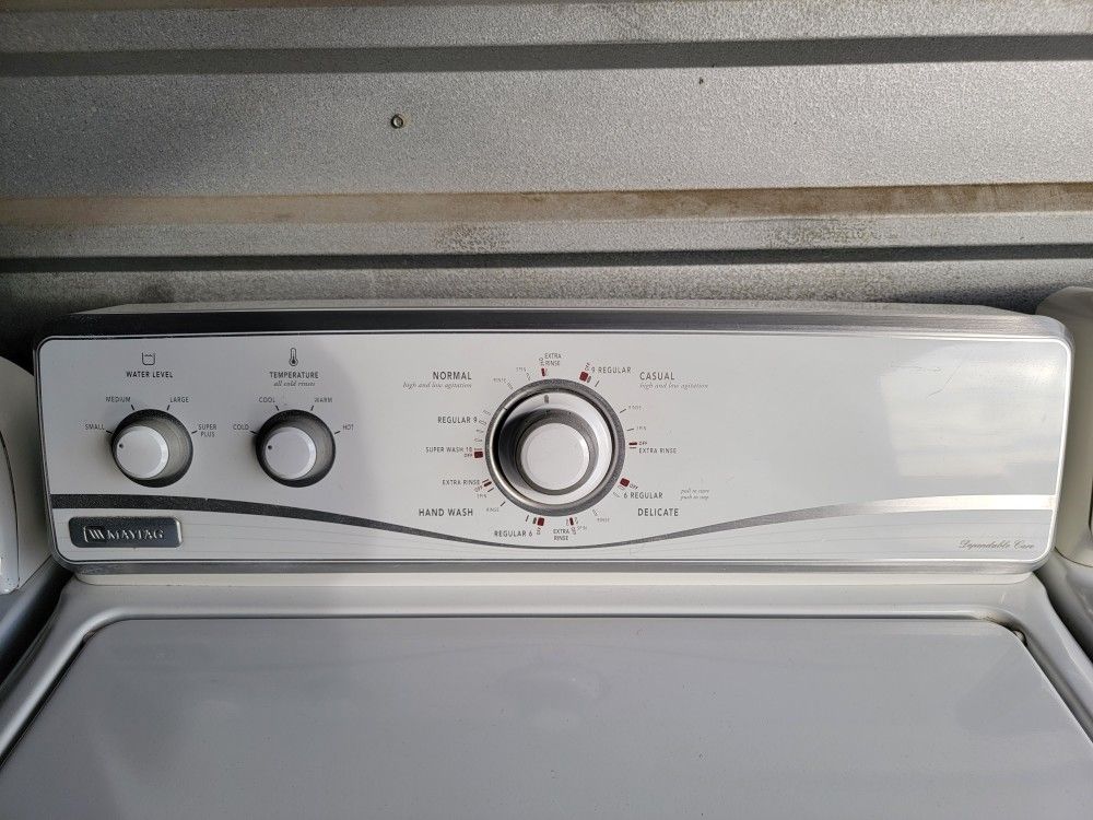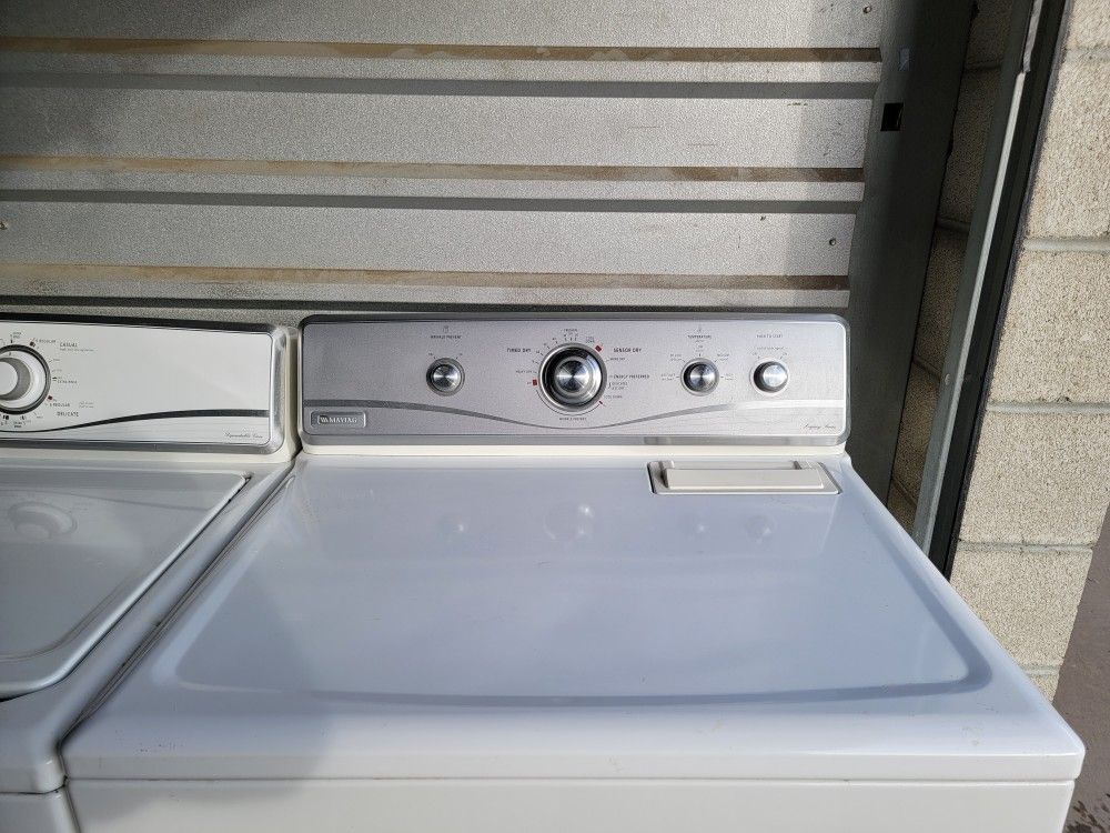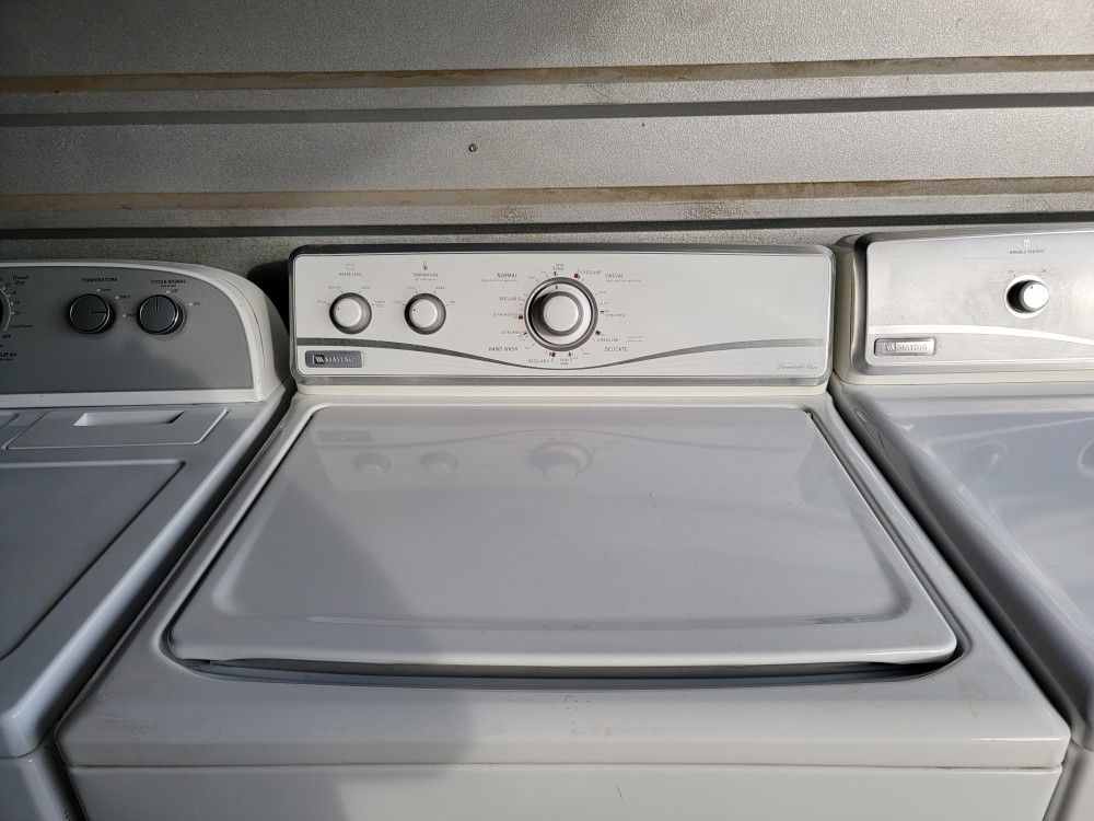 Beautiful Condition!!! Like New!! Top Of The Line!!! Maytag Dependable Care Washer and Maytag Electric Dryer!!! Must See To Appreciate!!!Super Reliable!!!Washer Has Oversized, Tub!!2 Speed Motor with Multiple Agitation Speeds!!!Built To Last!!!They Work Perfectly!!!Made With Commercial Quality, High Quality Parts!!!Lots Of Great Settings!Multiple Wash Cycles:Normal CasualHand WashDelicateRegularExtra RinseRinse and SpinDrain and Spin Load Size Settings:Small Medium LargeSuper PlusWash Temp: ColdCoolWarmHotPerfect For a Small or Large, Family!!Cleans Large Blankets with Ease!!White Maytag, Sensor Dry, Electric Dryer!!!Has Lots Of Great Cycles and Options!!!Has 5 Temperature Settings:High Medium LowExtra LowAir FluffHas Wrinkle Prevent:On/OffHas End Of Cycle Signal:On/OffMust See to Appreciate!!Local Delivery $25.00 - $30.00 (Longer Distances, Extra)