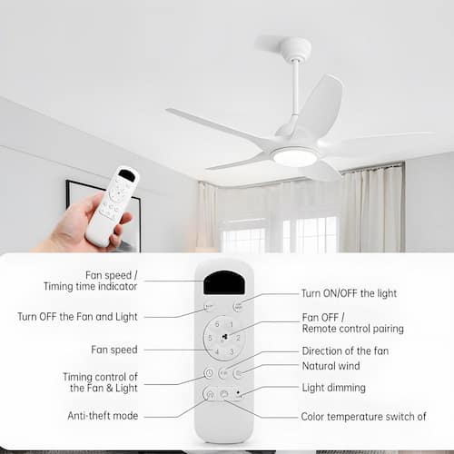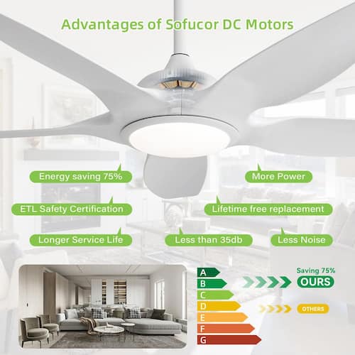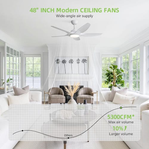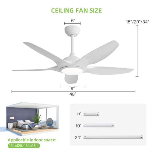 About This Product:The Sofucor 48 in. Quiet Ceiling Fan with remote control and three downrod sizes enhances your life with convenience. Made of 3 ABS blades and a matte white finish, this white fan adds sophistication to any space. Its 3-color adjustable LED light offers customizable lighting for any occasion, while the smart memory feature saves your preferred light settings for future use. Designed for year-round comfort, the energy-efficient DC motor operates quietly, you can easily adjust 6-different fan speeds and switch between forward and reverse modes, perfect for cooling down in the summer and distributing warmth in the winter. The convenient timer function allows 1/4/8-hour settings, Whether you´re looking to create a cozy ambience or refresh the air, this modern fan will be a good choice for you.