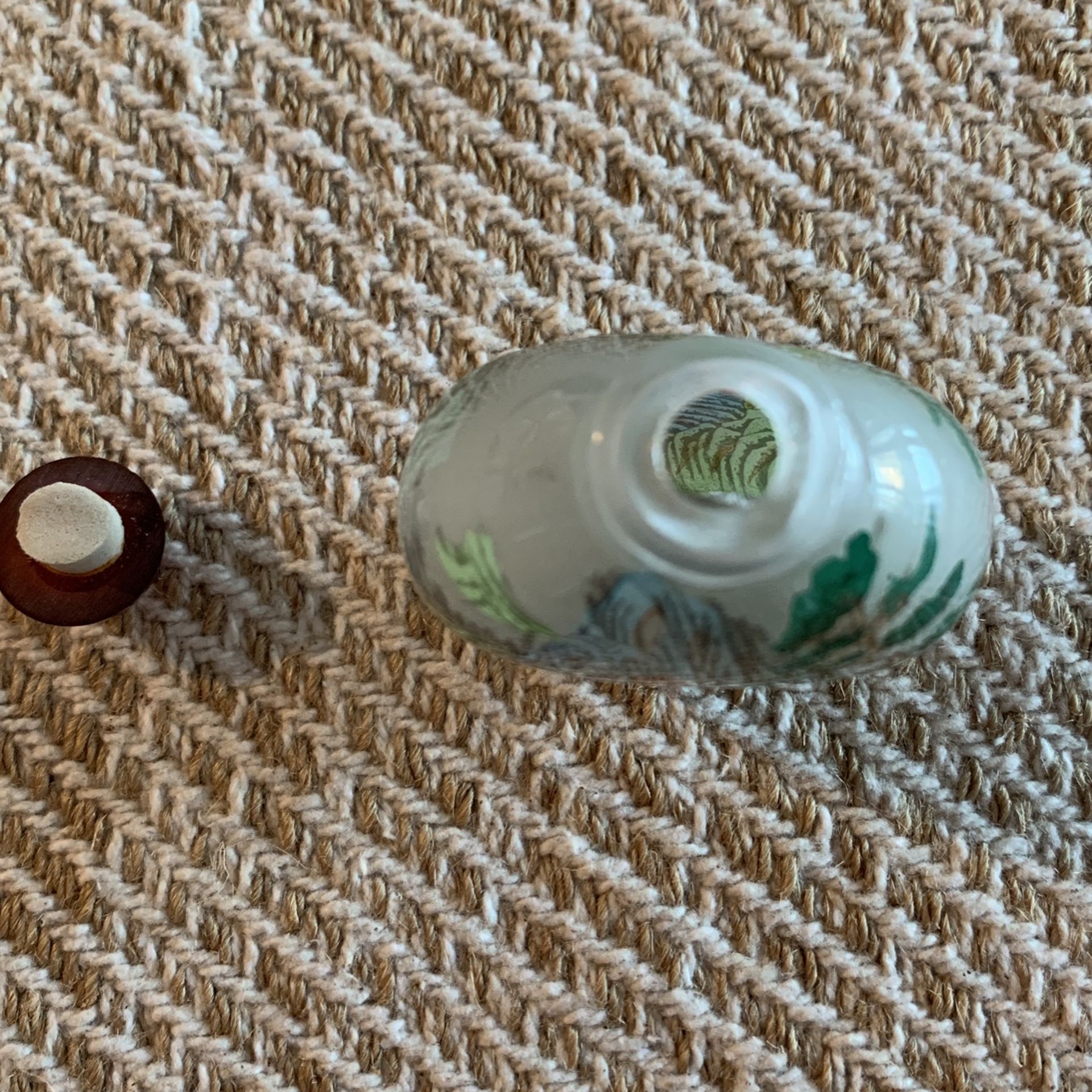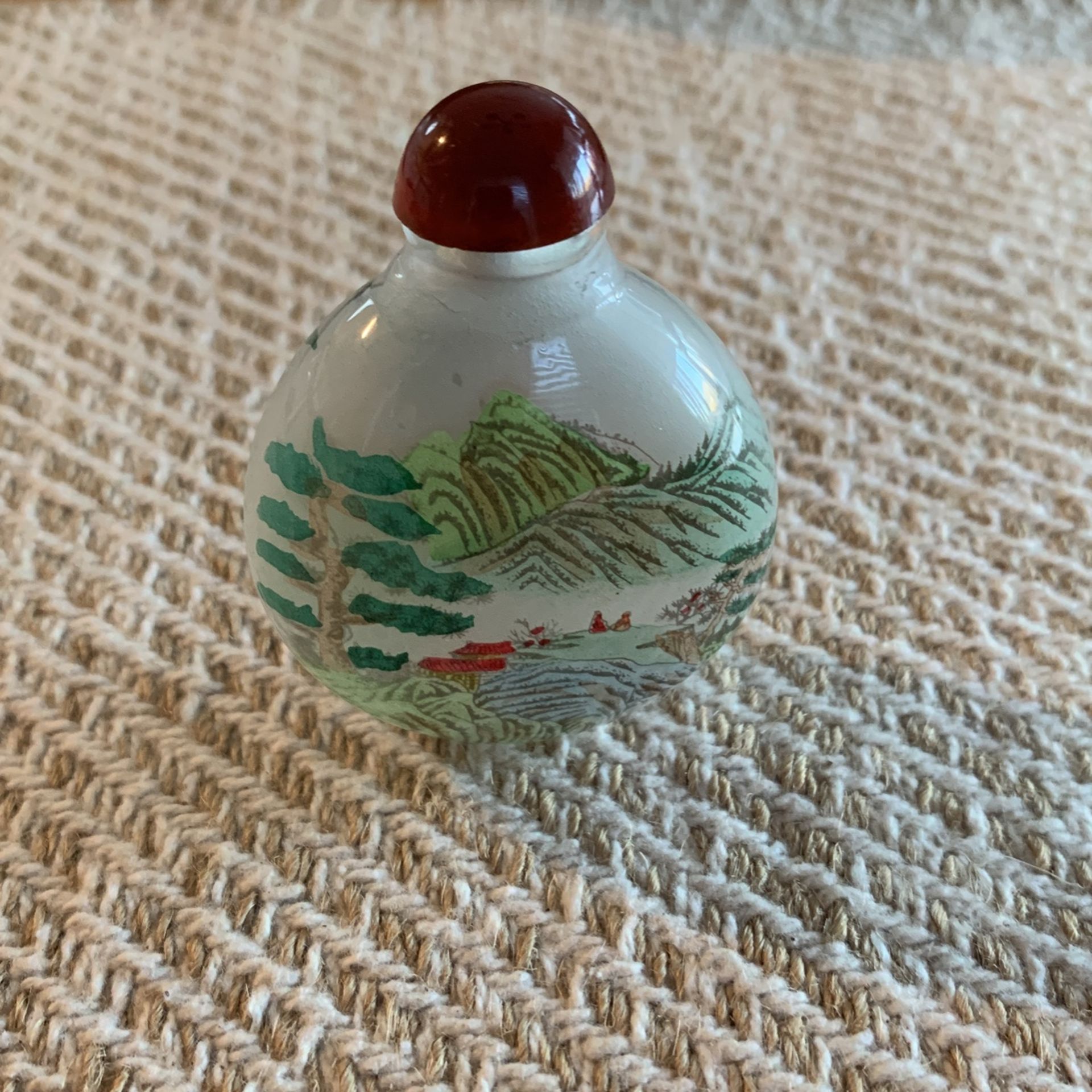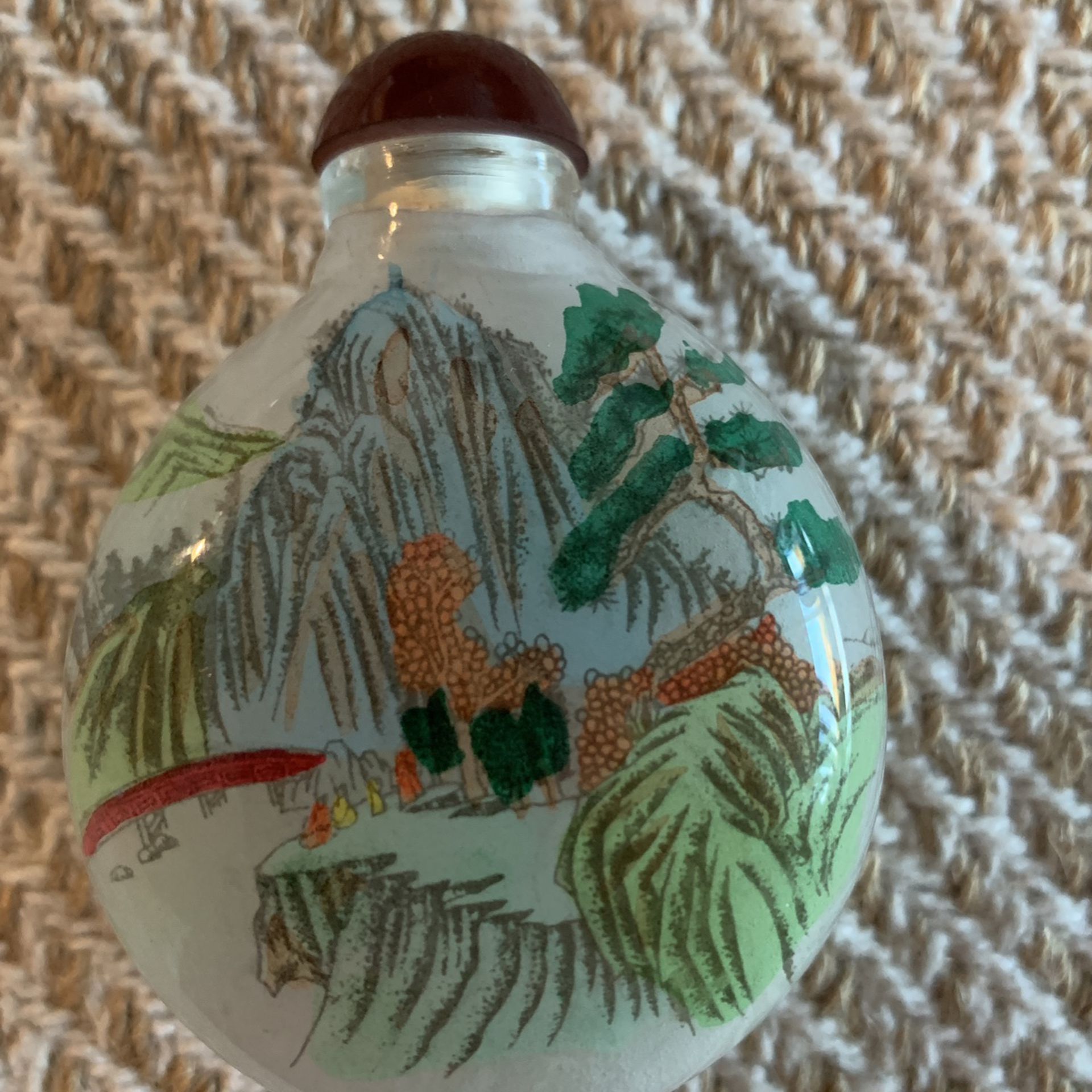 Reverse Glass Snuff Bottle - Mountain Side Scene with People. New condition pick up is in El Cajon