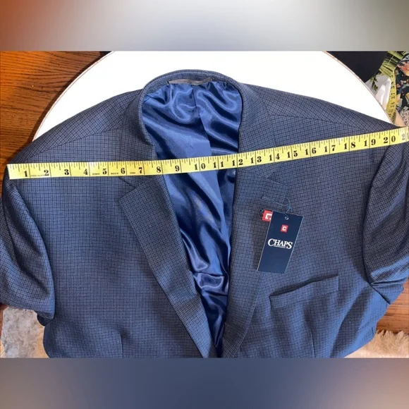 New Chaps lined Blazer Sport Coat Jacket Mens Plaid 50R.MSRP 160.00New with tags.Sleeve 24”Shoulder 21”Chest 1” below armhole 26”HPS to hem 33”Colors may appear different from screen to in person.Happy to answer questions.Please read description.See photos.Offers accepted.No returns.Mailed in a polymailer.