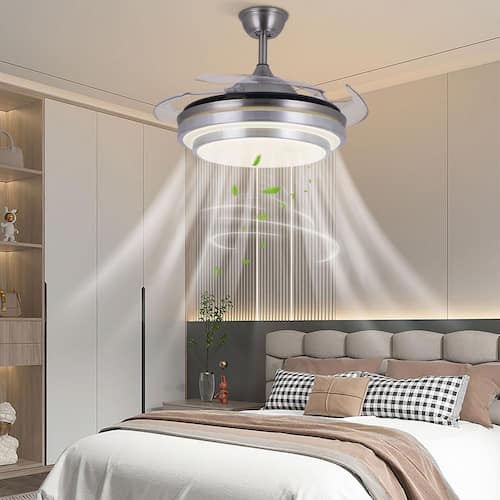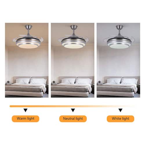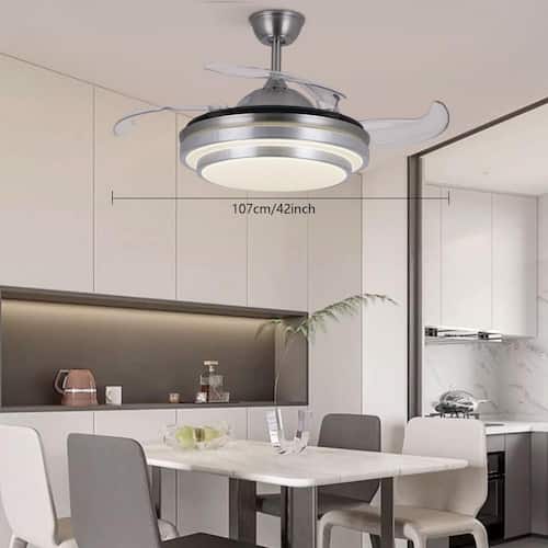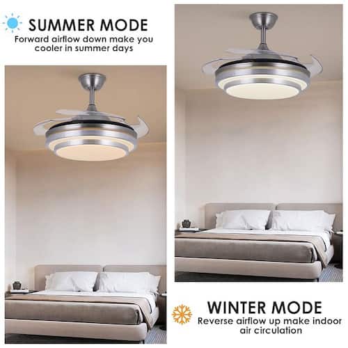 About This Product:This ceiling fan light is both fashionable and practical, which not only has an exquisite appearance, but also is made of high-quality materials, sturdy and durable. Variable wind speed, remote control and timer provide you with a more convenient life. With an applicable area of about 161.46 sq.ft, it is suitable for a bedroom, living room, kitchen, dining room, cafe, office and so on. It is not only suitable for indoor lighting but also can be used as a ceiling fan.