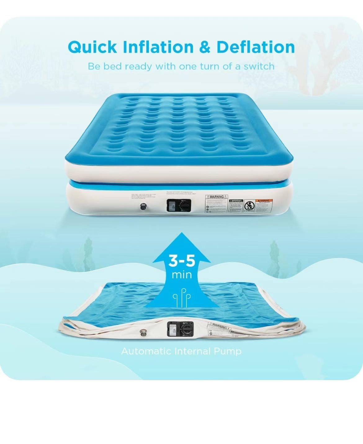 16 inches Air Mattress Queen with Built-in Pump For Home and Camping, Flocked Top Inflatable Air Bed for Guests, Family, Blue