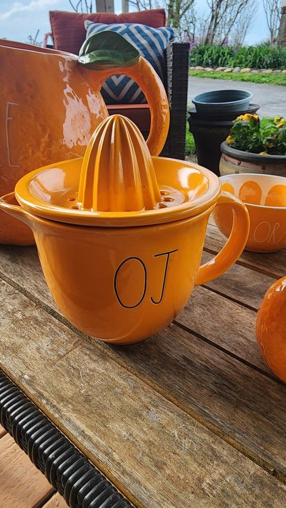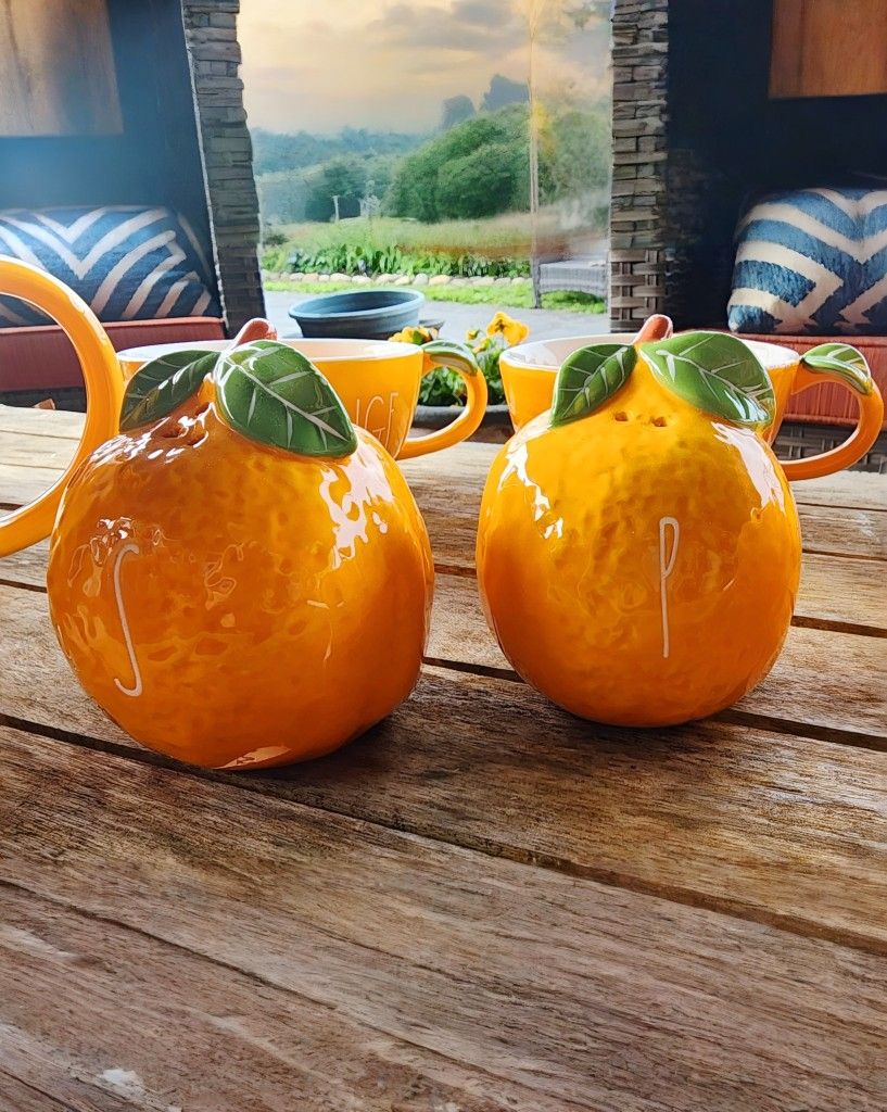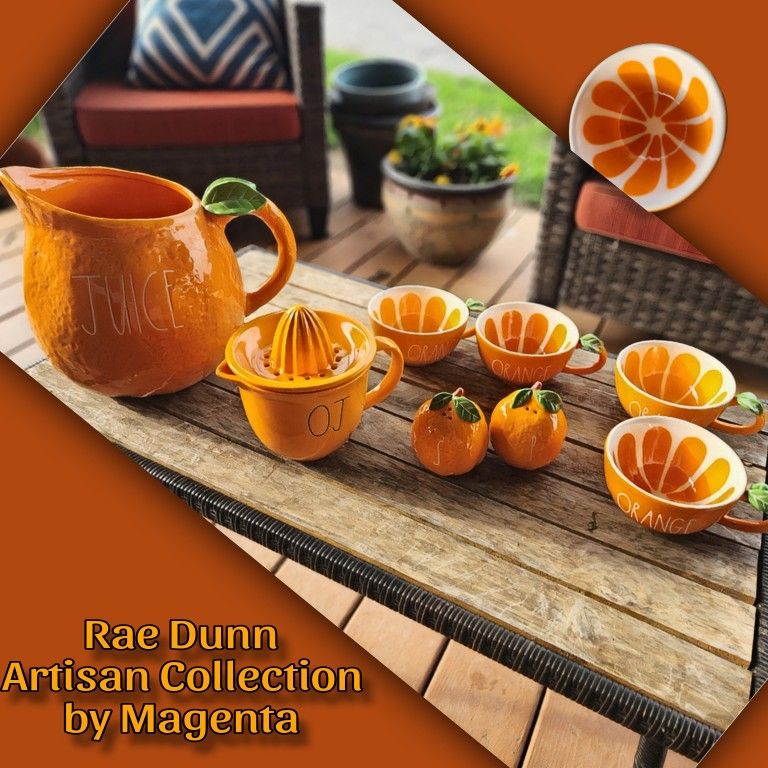 8 piece set features Orange Juice pitcher, orange squeezer, salt and pepper shakers and 4 cups.