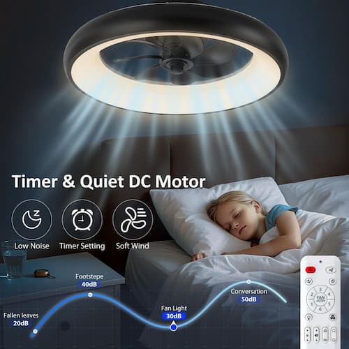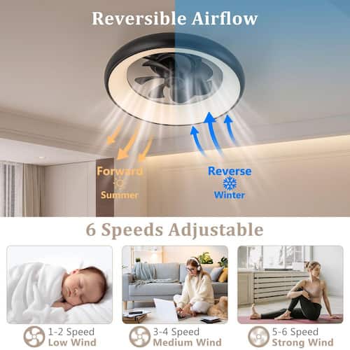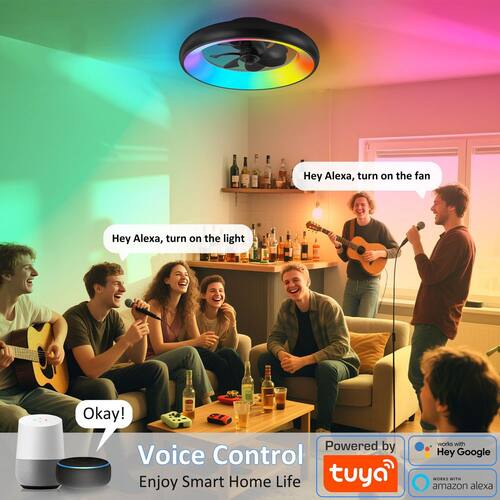 About This Product:With its sleek matte black finish and aerodynamic 7-blade design, this smart ceiling fan light introduces a bold, contemporary flair to any space. It seamlessly integrates into modern smart homes, offering intuitive control via app, voice commands, or remote. Whether you´re adjusting RGB lighting to match your mood or setting the perfect airflow with six fan speeds, every function is designed for effortless customization. The reversible DC motor supports year-round comfort-cooling in summer, circulating warmth in winter. Quiet performance and timer settings make it ideal for bedrooms and living spaces where peace and control matter most. This is more than a fan light-it´s a statement of style and functionality.