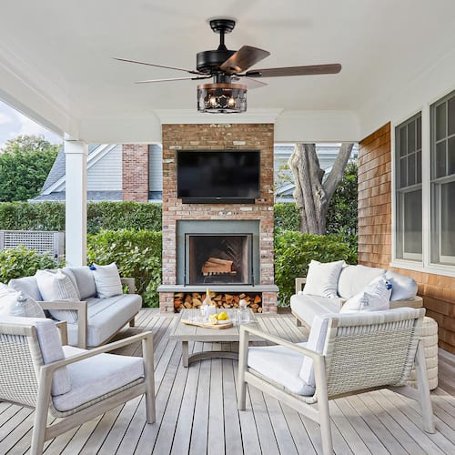 About This Product:The sleek black fan is a perfect addition to your home, featuring a matte black fan body and 5 plywood blades. It includes 2 down rods (5 in. and 10 in.), a remote and a lamp shade. The quick install mounting bracket and 5 reversible blades make setup and customization easy. With 3-speed settings and a reversible direction button on the fan body, it ensures optimal comfort. The fan runs very quietly With minimal noise. Designed For indoor and covered outdoor use, it adds both style and functionality to any space.