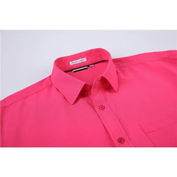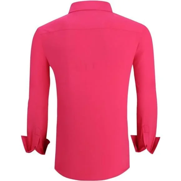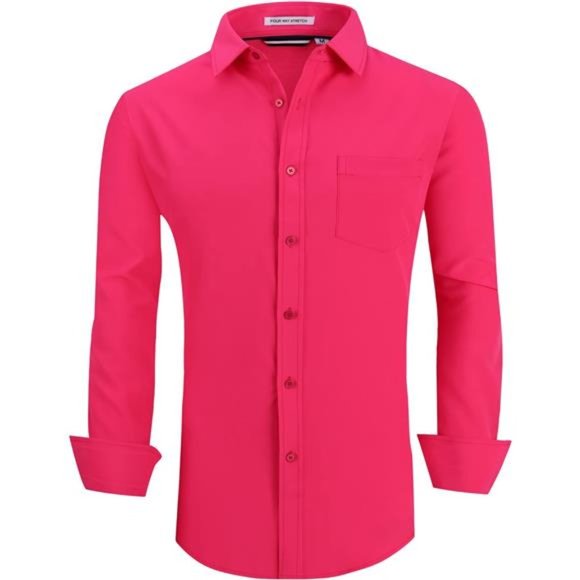- Material: Our button down shirts for men collection are made from 97%Polyester,3%Spandex,Soft,4-Way Stretch,Iron Free,Light Weight, Suitable for Spring,Summer,Autumn,and down in Winter.- Decent Style: Two tones easy care designer mens button down shirts,left chest pocket,fashion trims and taps on collar band and inner placket,contrast buttons and button holes,outstanding and easy to get compliments. Can´t beat it,start to fill your wardrobe and become a stylish man now!- Size: Based on American regular fit mens casual button-down shirt sizing,fits true to size,can be dressed up or down, tucked or un-tucked. Easy to pair with Jeans,Chinos,Dress Pants and others.- Occassion: This mens button up shirts are great to wear as a go-to work shirt,casual dress shirt,suitable for formal, office,meeting,dating,party and others. Also it´s an ideal gift for father,husband,boy friend,brothers.- Warm Tips: We have white,blue,black,navy,burgundy,pink,purple,green in this long sleeve button down shirts colletion, good quality, nice workmanship, easy to care and no need to iron, Kindly wash this novelty mens dress shirts before wearing. Return freely if don´t like or not fitted.
