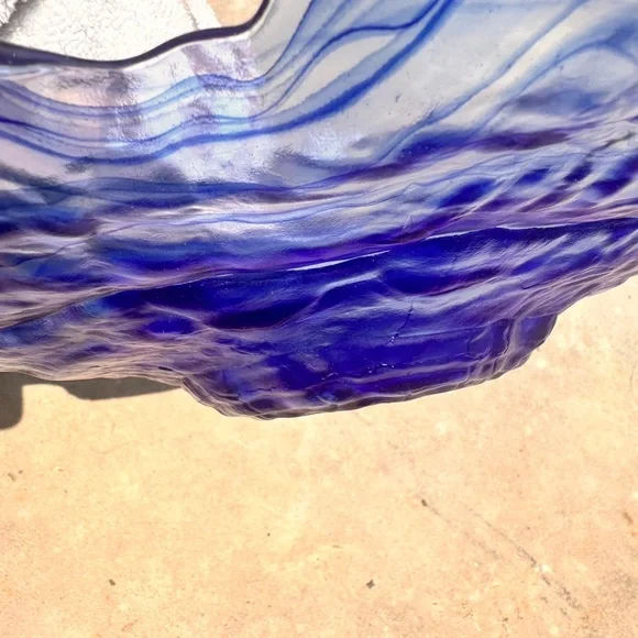 Enhance your home decor with this stunning blue glass art bowl. Its vibrant color adds a touch of elegance to any space.