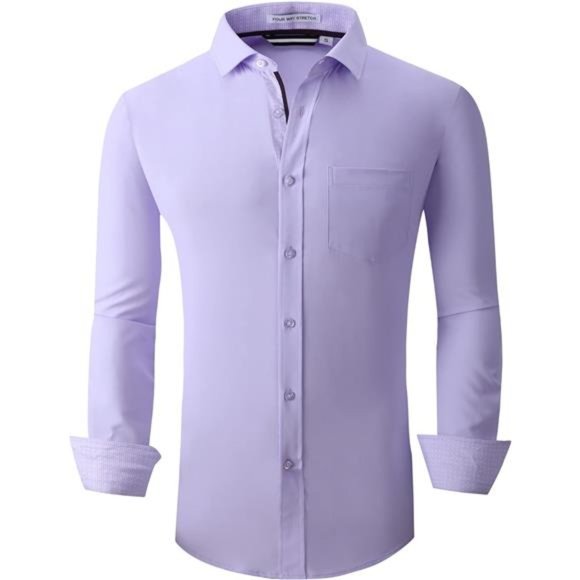 - Material: Our button down shirts for men collection are made from 97%Polyester,3%Spandex,Soft,4-Way Stretch,Iron Free,Light Weight, Suitable for Spring,Summer,Autumn,and down in Winter.- Decent Style: Two tones easy care designer mens button down shirts,left chest pocket,fashion trims and taps on collar band and inner placket,contrast buttons and button holes,outstanding and easy to get compliments. Can´t beat it,start to fill your wardrobe and become a stylish man now!- Size: Based on American regular fit mens casual button-down shirt sizing,fits true to size,can be dressed up or down, tucked or un-tucked. Easy to pair with Jeans,Chinos,Dress Pants and others.- Occassion: This mens button up shirts are great to wear as a go-to work shirt,casual dress shirt,suitable for formal, office,meeting,dating,party and others. Also it´s an ideal gift for father,husband,boy friend,brothers.- Warm Tips: We have white,blue,black,navy,burgundy,pink,purple,green in this long sleeve button down shirts colletion, good quality, nice workmanship, easy to care and no need to iron, Kindly wash this novelty mens dress shirts before wearing. Return freely if don´t like or not fitted.