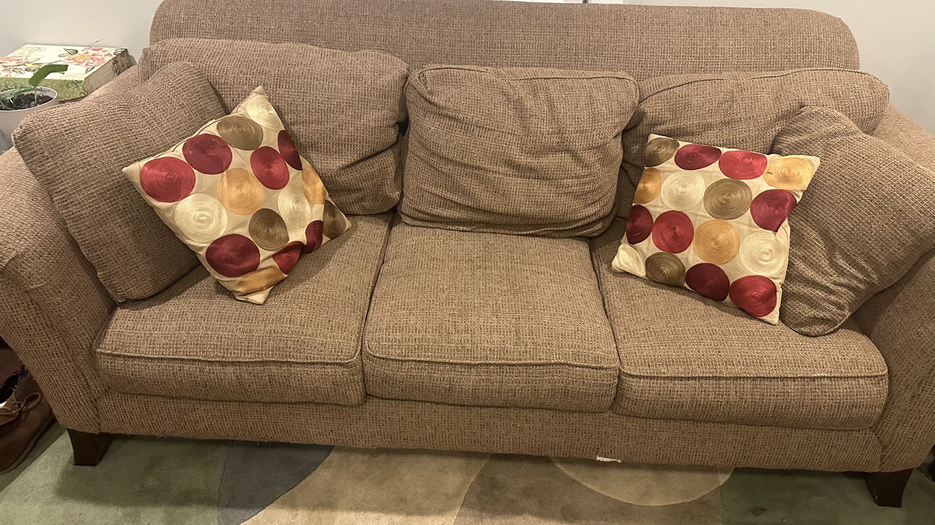 Comfortable tan/brown couch. In good shape outside of a few tears at the bottom. Unable to deliver, unfortunately, but will help you load the couch into your truck or van.