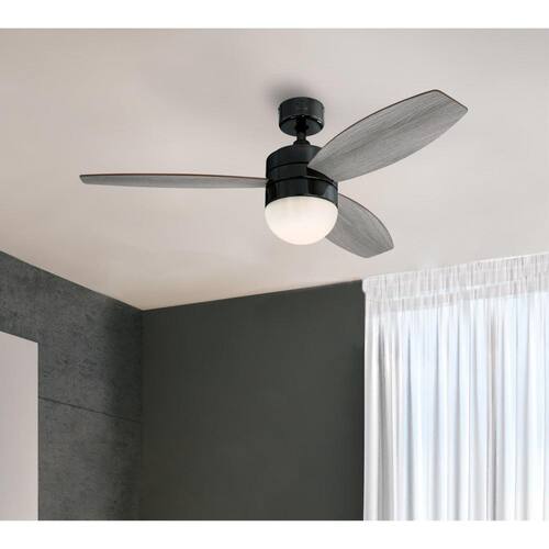 About This Product:The Westinghouse Drake modern ceiling fan offers clean lines, a gun metal finish and a unique blade shape. An integrated, dimmable LED light kit with opal frosted glass provides additional energy and cost-saving benefits. It includes a remote control for convenient operation. Add sleek, modern ceiling fan style to any large room, from bedrooms to living rooms, while enjoying year-round comfort. Westinghouse ceiling fans are backed by a lifetime warranty on the motor and a 2-year warranty on all other parts. Westinghouse is a trusted, global brand. Westinghouse knows lighting and offers products with exceptional quality, reliability and functionality. Product reference number 73052.