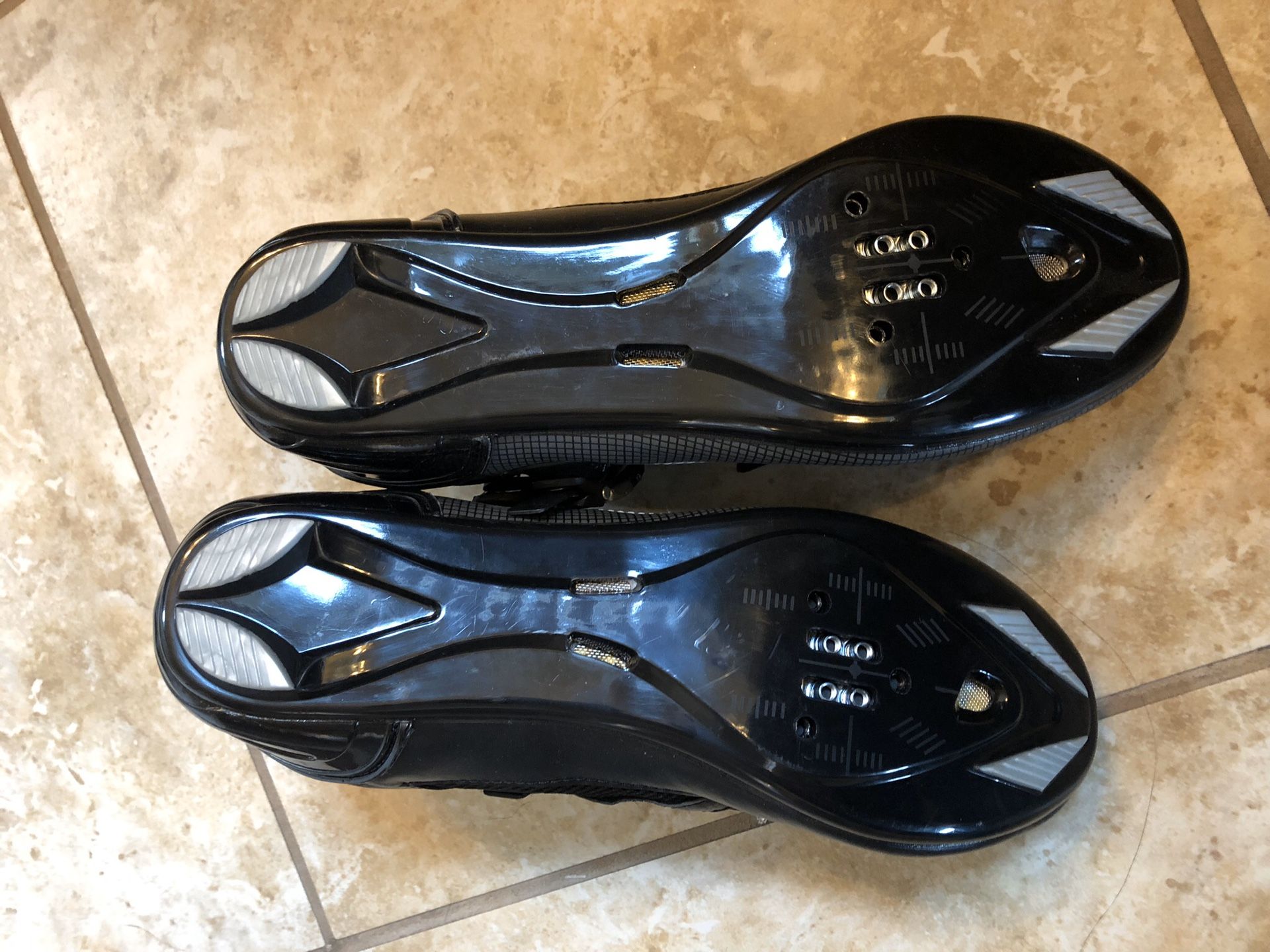 Brand New, Size 46, Gavin Elite Road Cycling Shoes. Very comfortable, high performance cycling shoes. Compatible with Look, SPD, SPD-R and SPD-SL cleats (sold separately). Mesh panels on the uppers and vents in the rigid nylon fiberglass soles encourage cooling air flow. The shoes have two straps and a micro adjustable buckle, ensuring a perfect custom fit every time you ride. The uppers are made of synthetic microfiber leather. These light and durable road cycling shoes will have you pedaling powerfully on your road bike or at any indoor cycling class.What can cycling shoes do for you?Enhance cycling experienceImprove pedal stroke power and efficiencyOptimize the foot-to-pedal connectionExercise more control during every ride