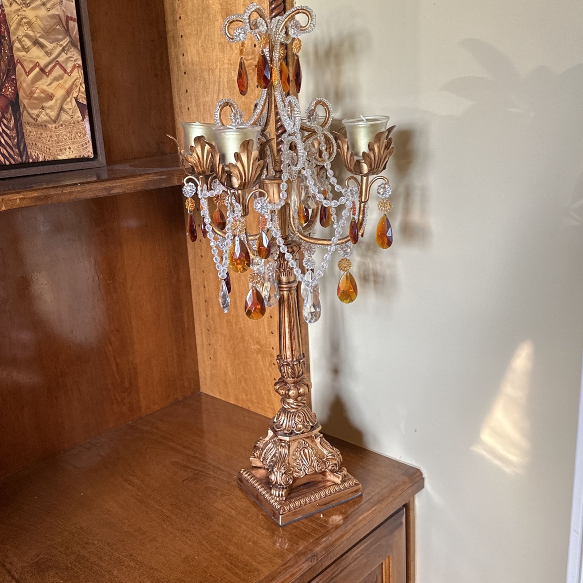 Wood and antique gold candle stand