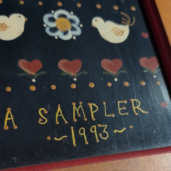 Charming sampler art with a ´Welcome´ message. Features a house, trees, and hearts. Perfect for home decor.Excellent Vintage Condition Measurements In Photos