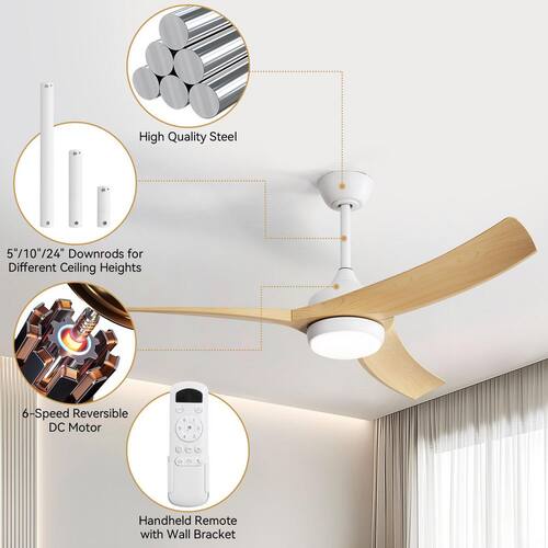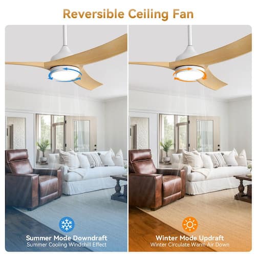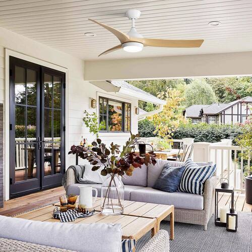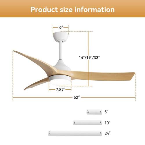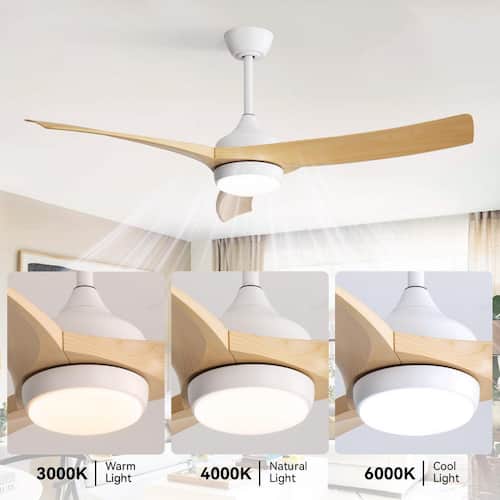 About This Product:Enhance your home interior with this CACI Mall 52-in. ceiling fan. It ft. s made for large rooms from 12 ft. x 12 ft. to 18 ft. x 18 ft., and you can place it on a standard or sloped ceiling(less than 17.5 degrees). This versatile fan is damp rated, making it perfect for covered outdoor locations like porches and patios and it looks great indoors as well. The powerful 18-Watt integrated LED light kit is dimmable and also allows you to choose between 3 different light temperature settings - warm white, daylight, or-cool white. The standard configuration includes 6 speeds DC motor and remote control, allowing for silent operation, reverse functionality, adjustable lighting, and a timer setting for 1H, 4H, or 8H. Adjusting the light color and fan speed is easy with the remote control. It is an excellent choice for enhancing both the comfort and style of your living space.