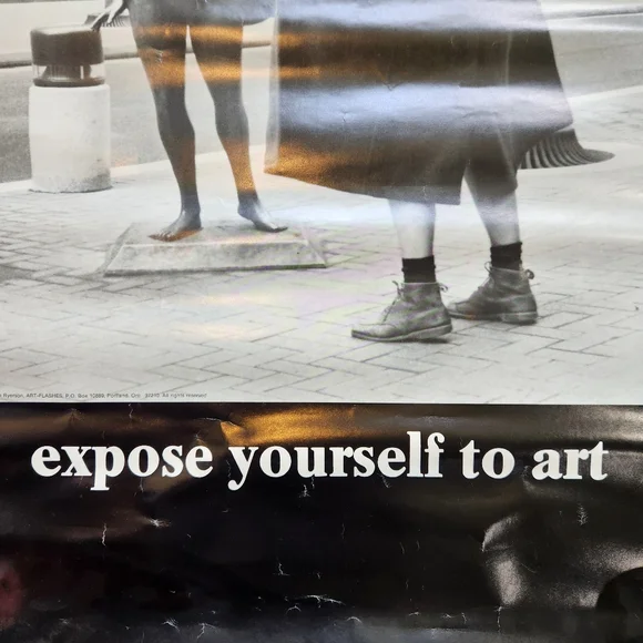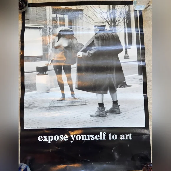 Explore urban creativity with this striking black and white art poster. Perfect for adding a touch of modern style to any space.Vintage ORIGINAL 1981 Mike Ryerson Poster “Expose Yourself To Art” 17x23Has been stored loosely rolled, please reference photos for condition.