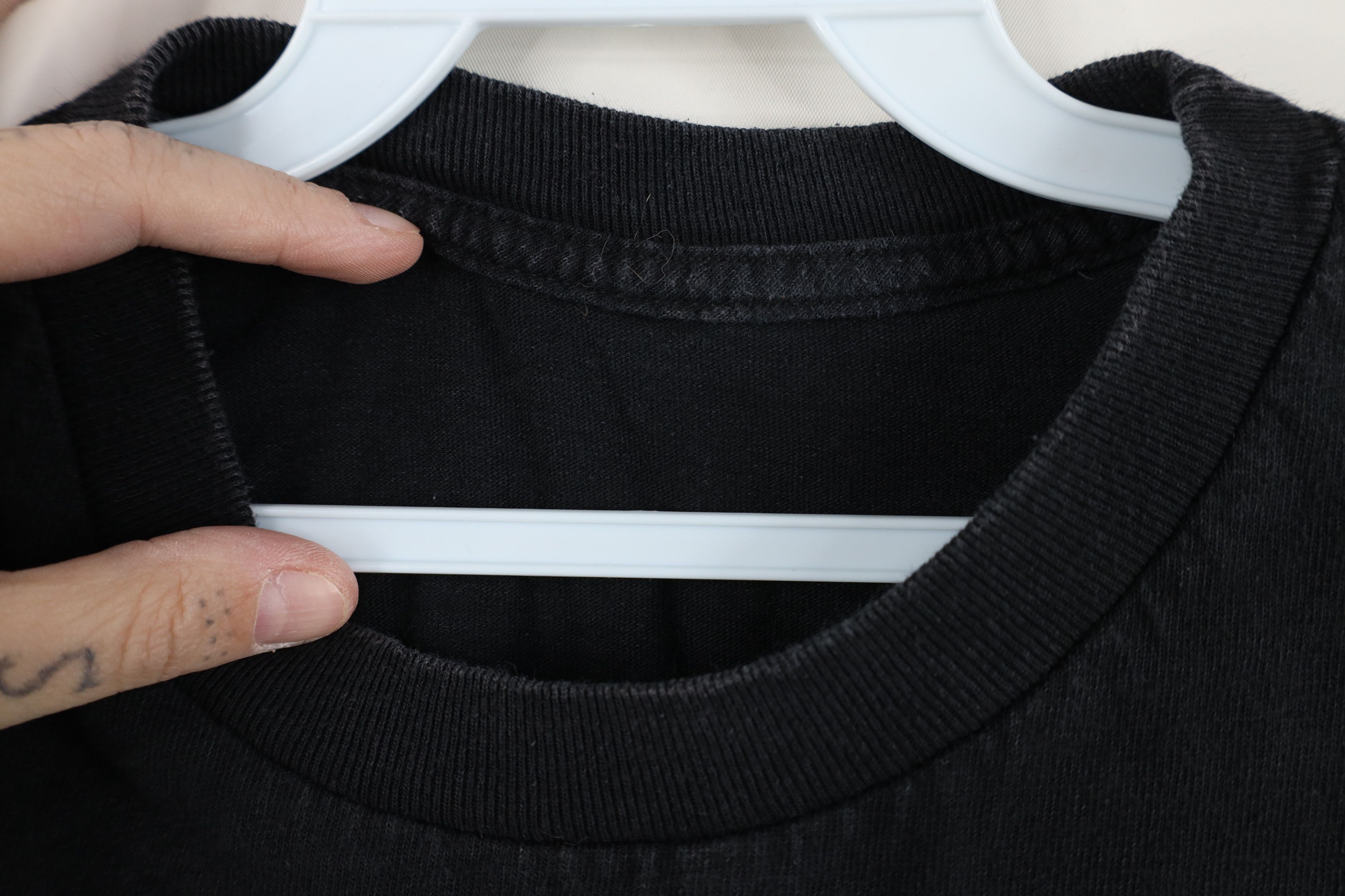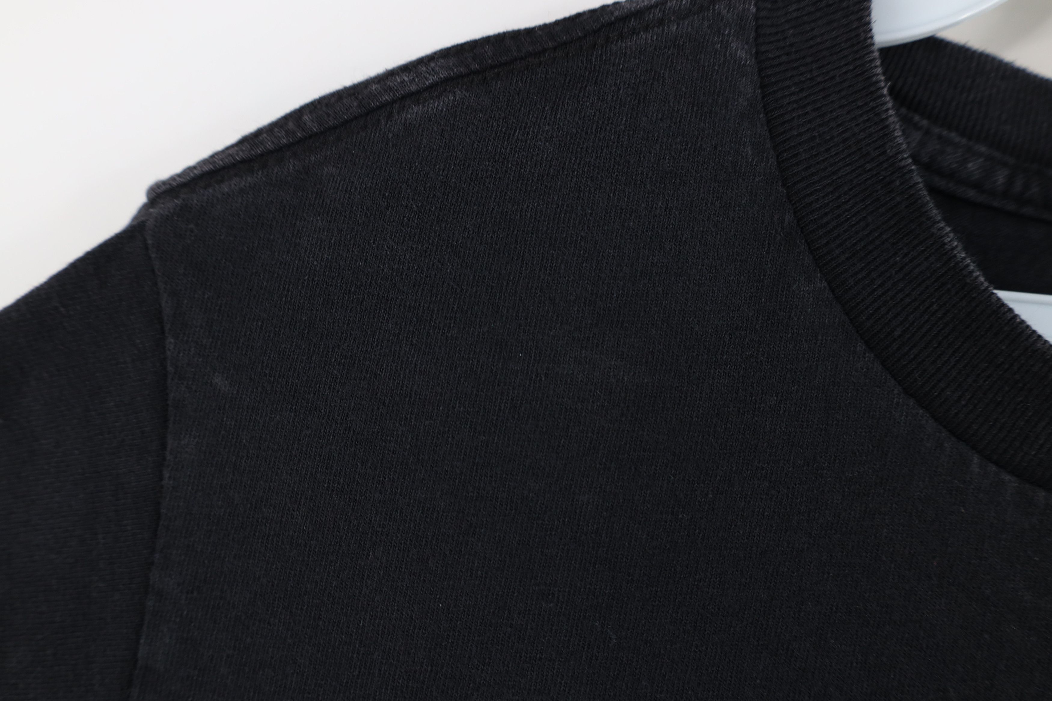 Blemishes front, shoulders, back top. Collar, arms discolored. Graphics, color faded. Pilling