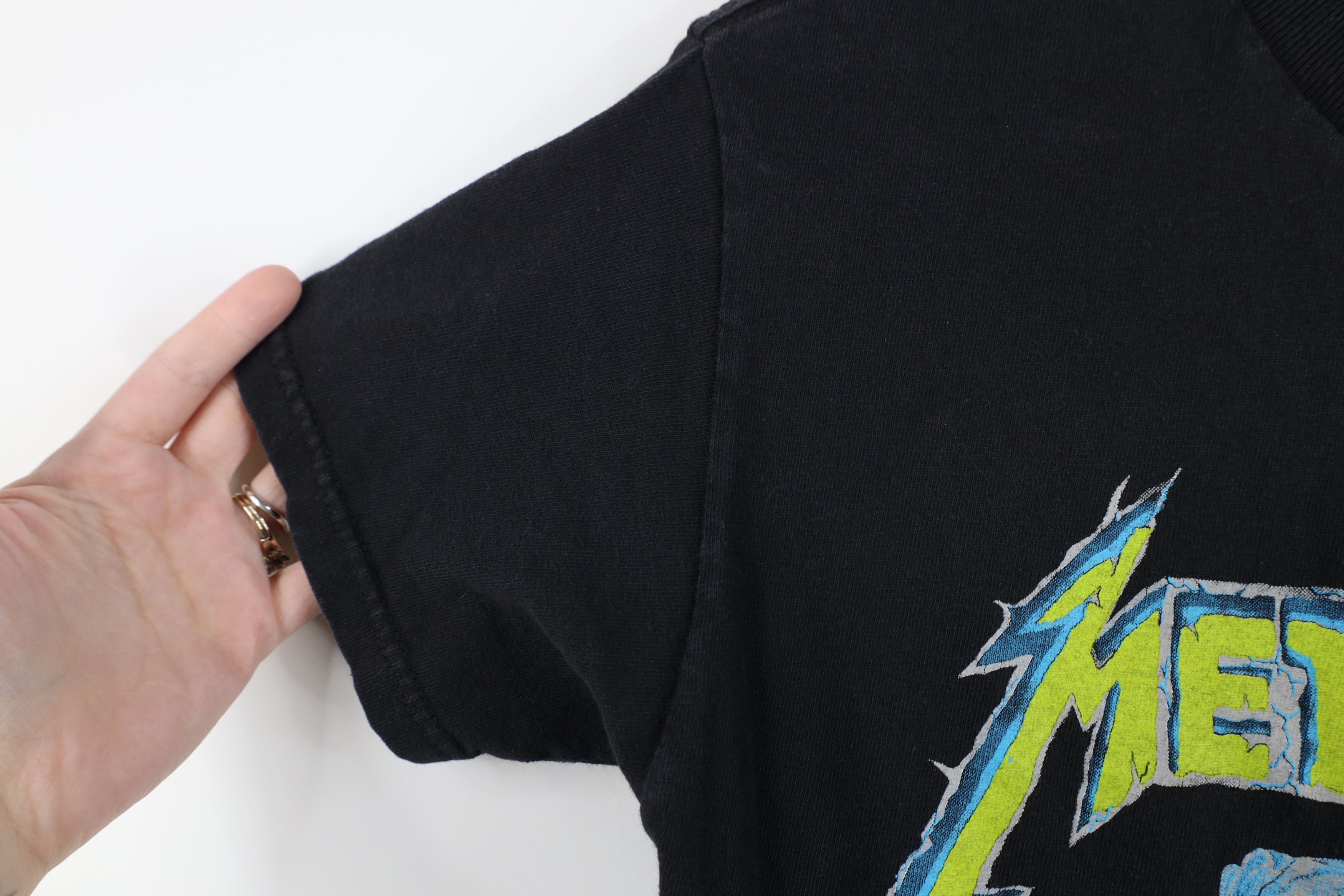 Retro Y2K Womens Small Faded And Justice For All Metallica Band T-Shirt Black